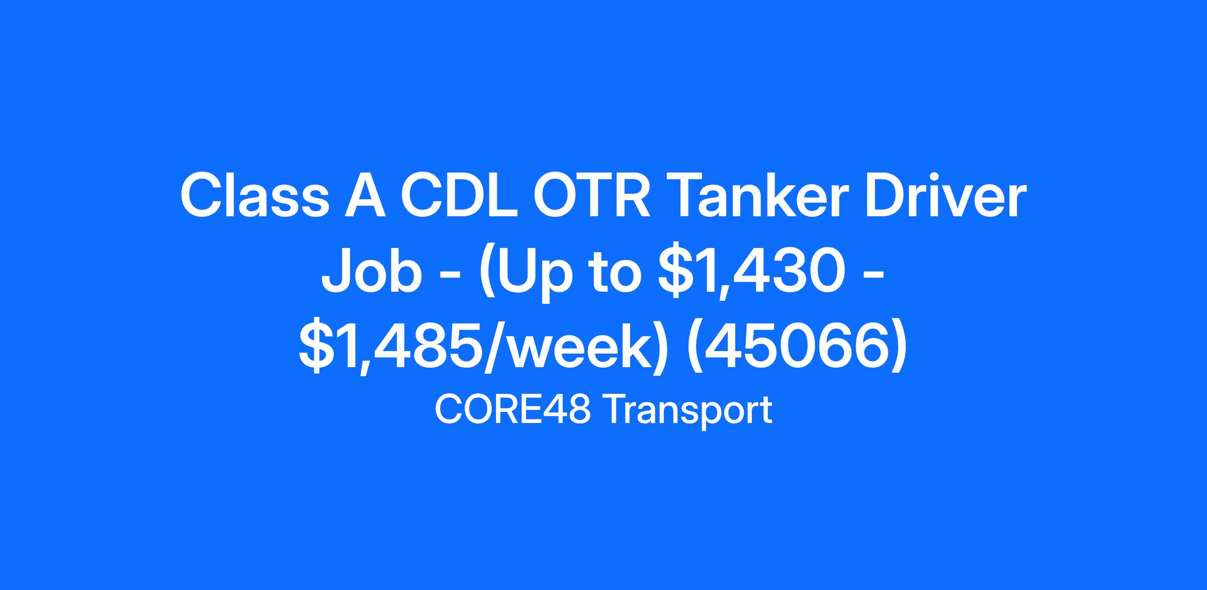 Class A CDL OTR Tanker Driver Job - (Up to $1,430 - $1,485/week) (45066)