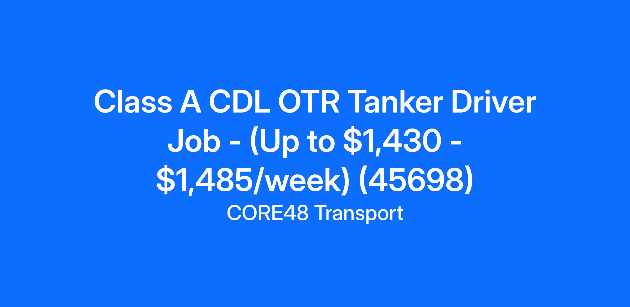 Class A CDL OTR Tanker Driver Job - (Up to $1,430 - $1,485/week) (45698)