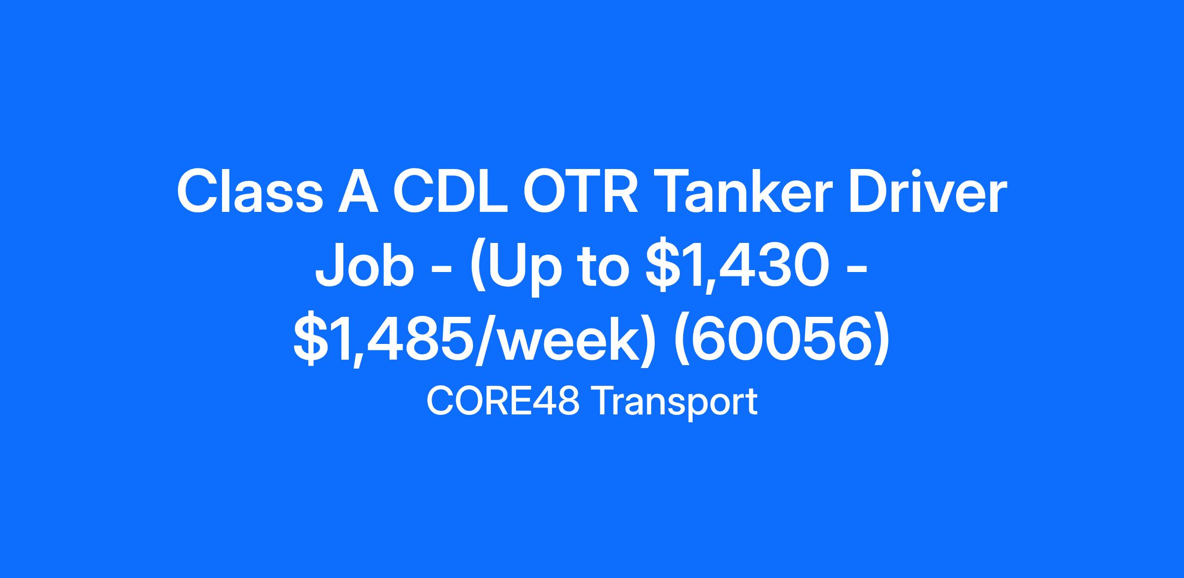 Class A CDL OTR Tanker Driver Job - (Up to $1,430 - $1,485/week) (60056)