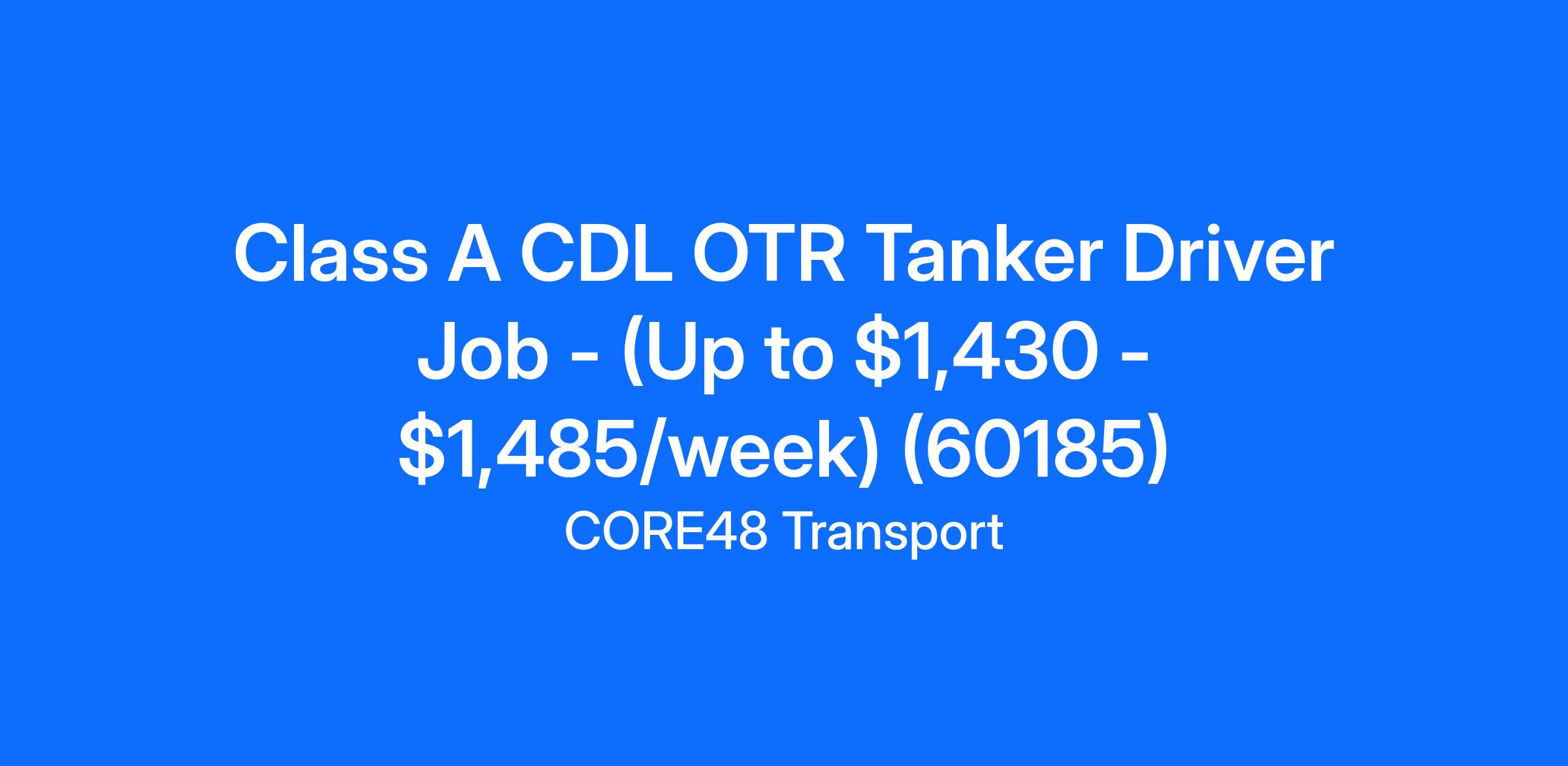 Class A CDL OTR Tanker Driver Job - (Up to $1,430 - $1,485/week) (60185)