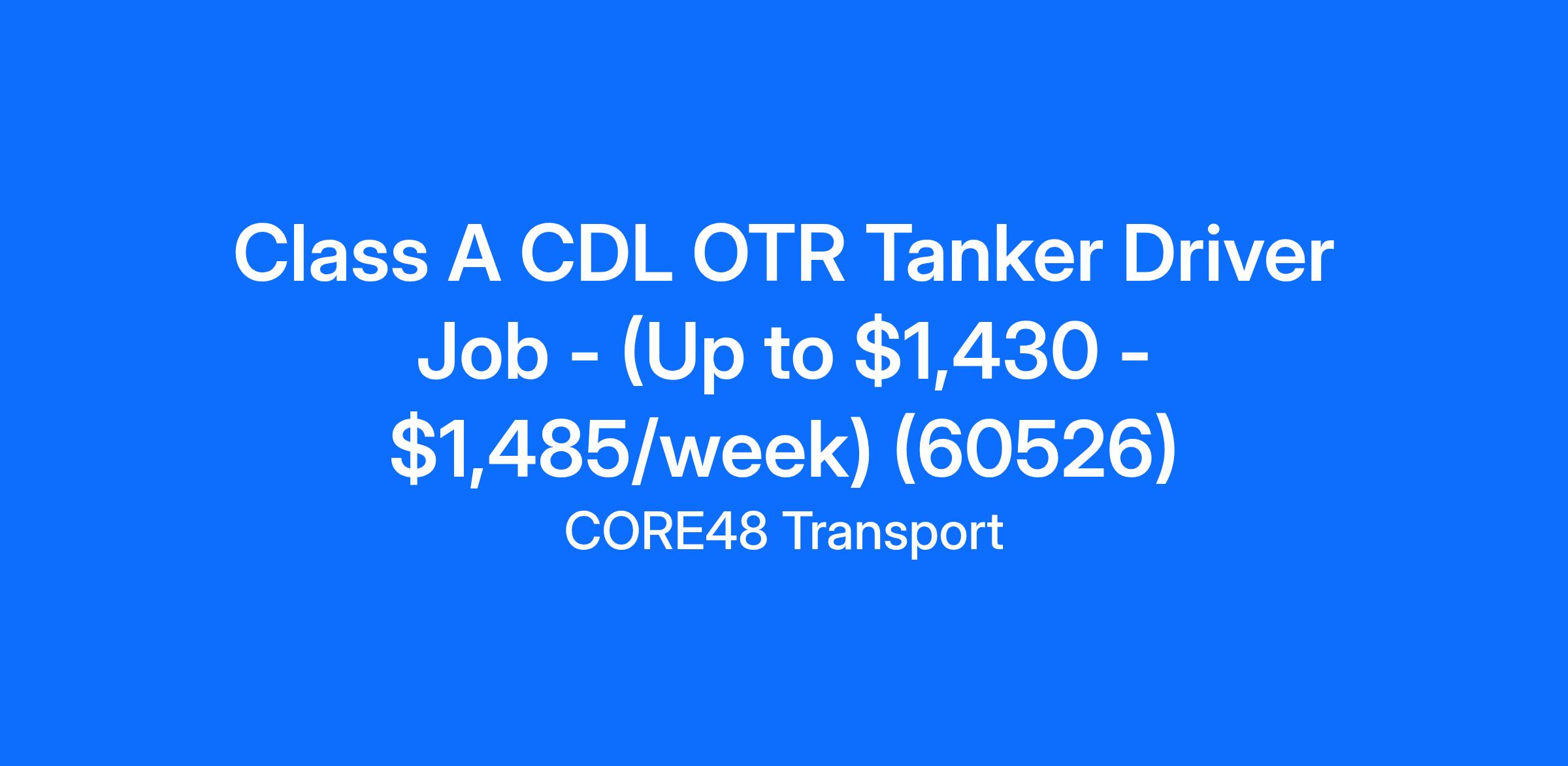 Class A CDL OTR Tanker Driver Job - (Up to $1,430 - $1,485/week) (60526)