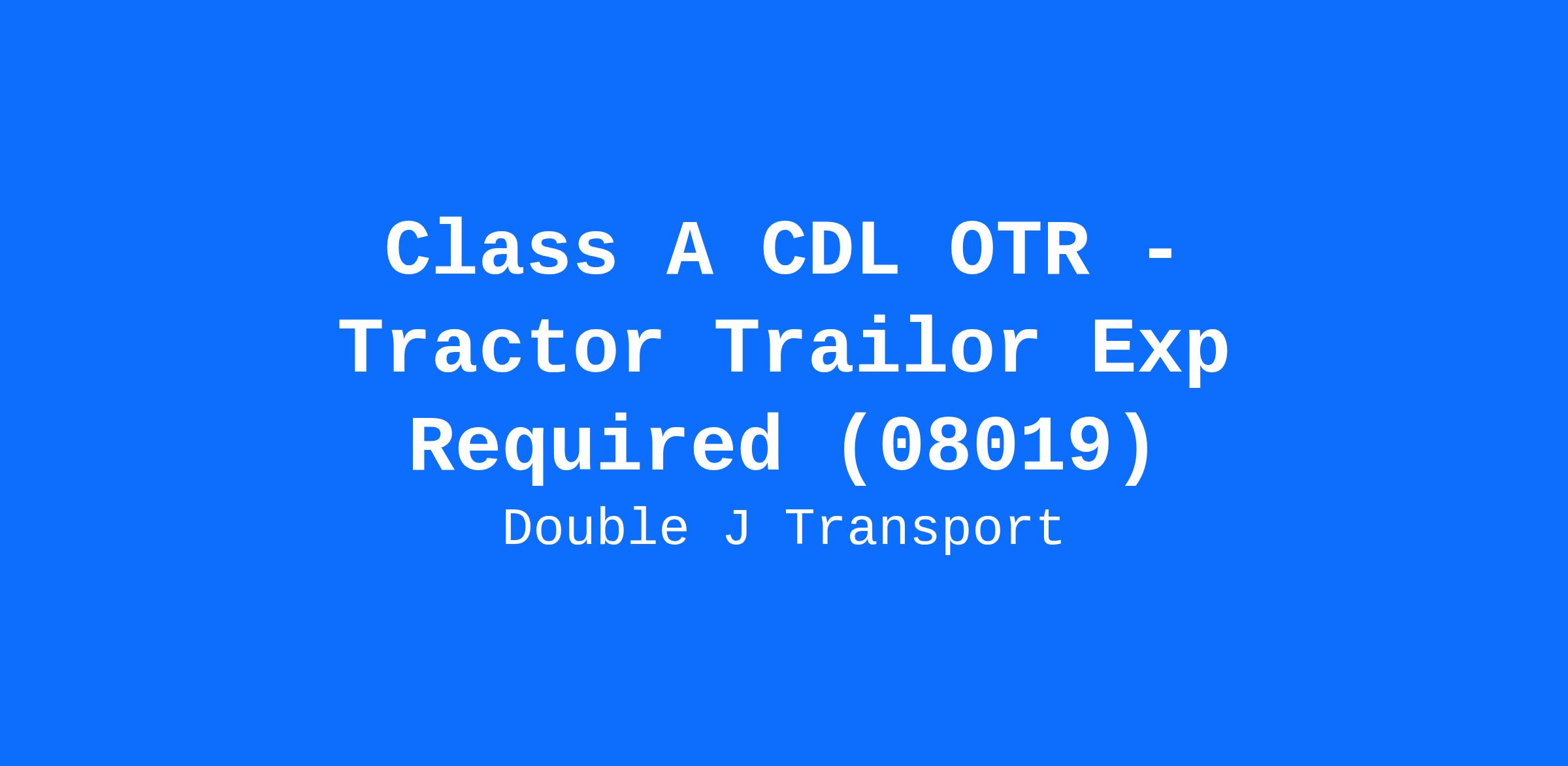 Class A CDL OTR - Tractor Trailor Exp Required (08019)