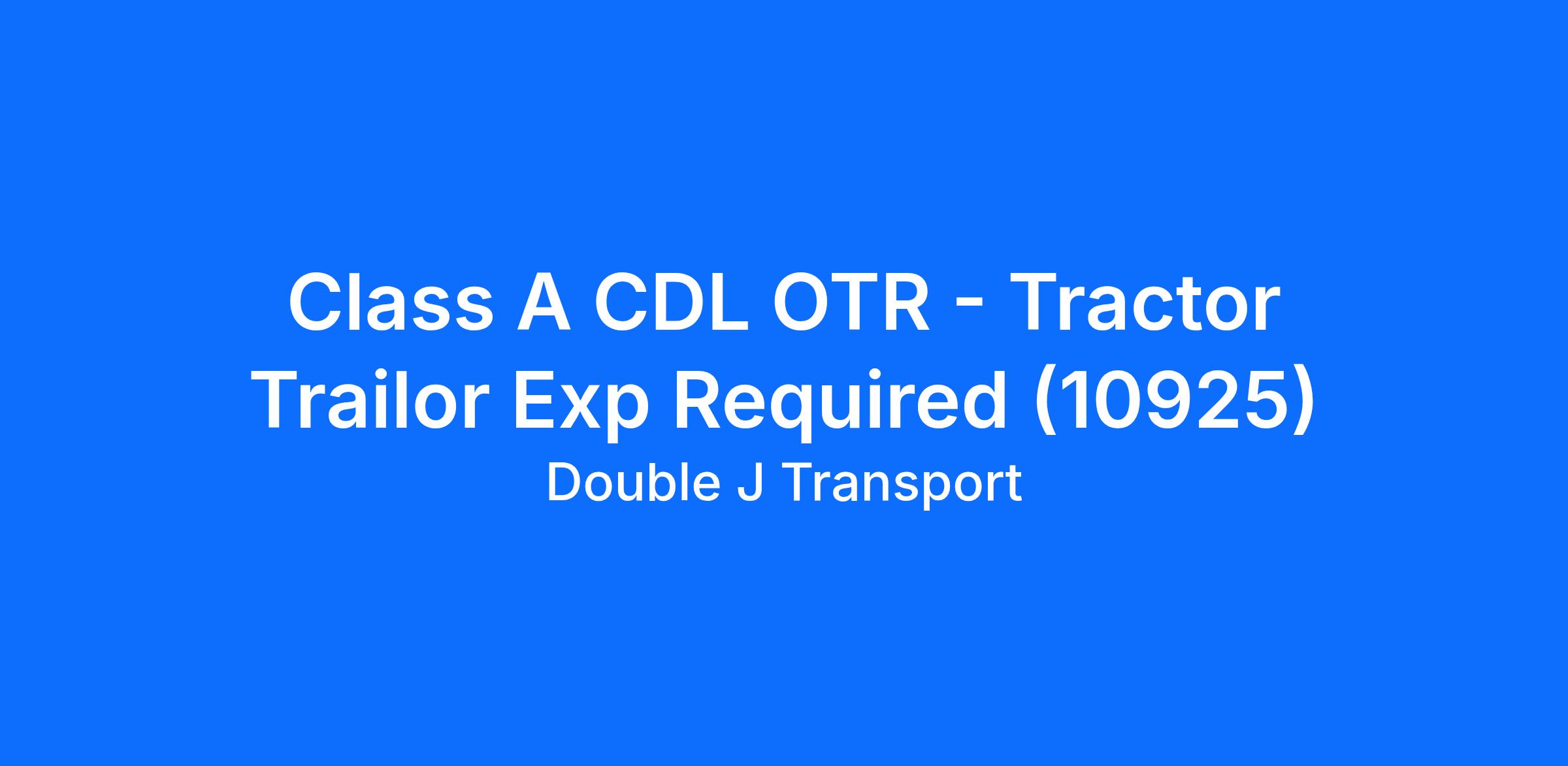 Class A CDL OTR - Tractor Trailor Exp Required (10925)
