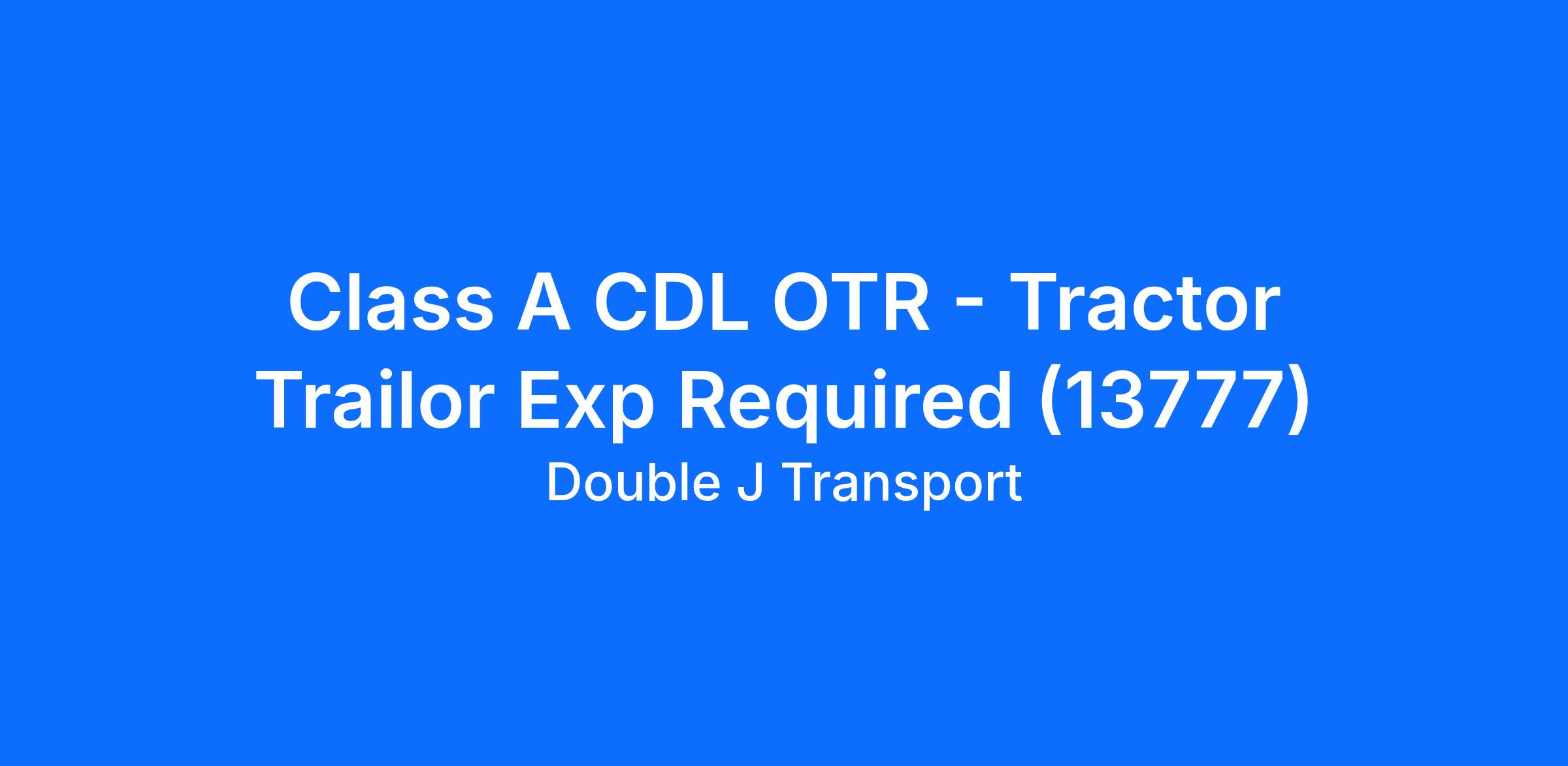 Class A CDL OTR - Tractor Trailor Exp Required (13777)