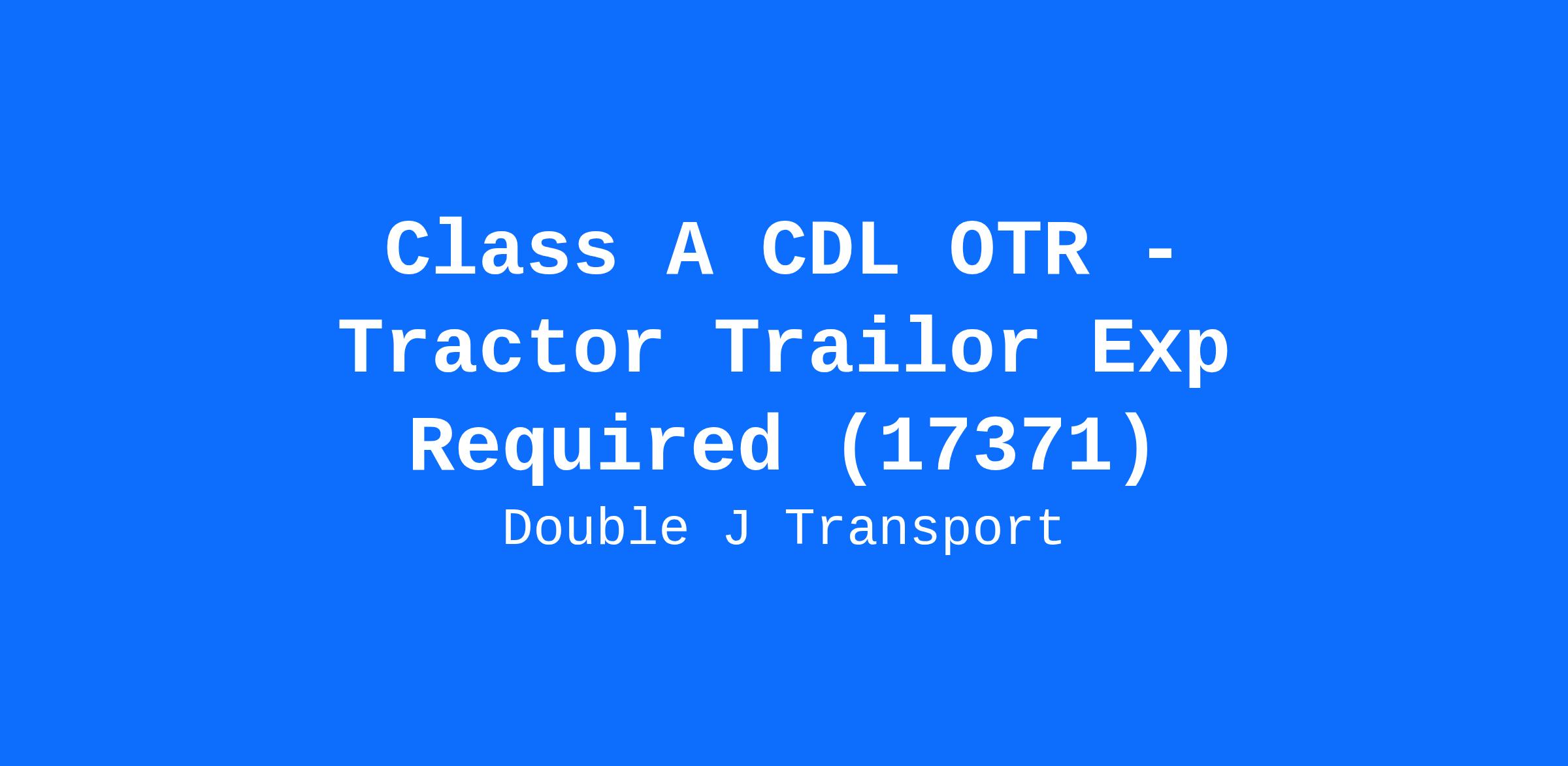 Class A CDL OTR - Tractor Trailor Exp Required (17371)