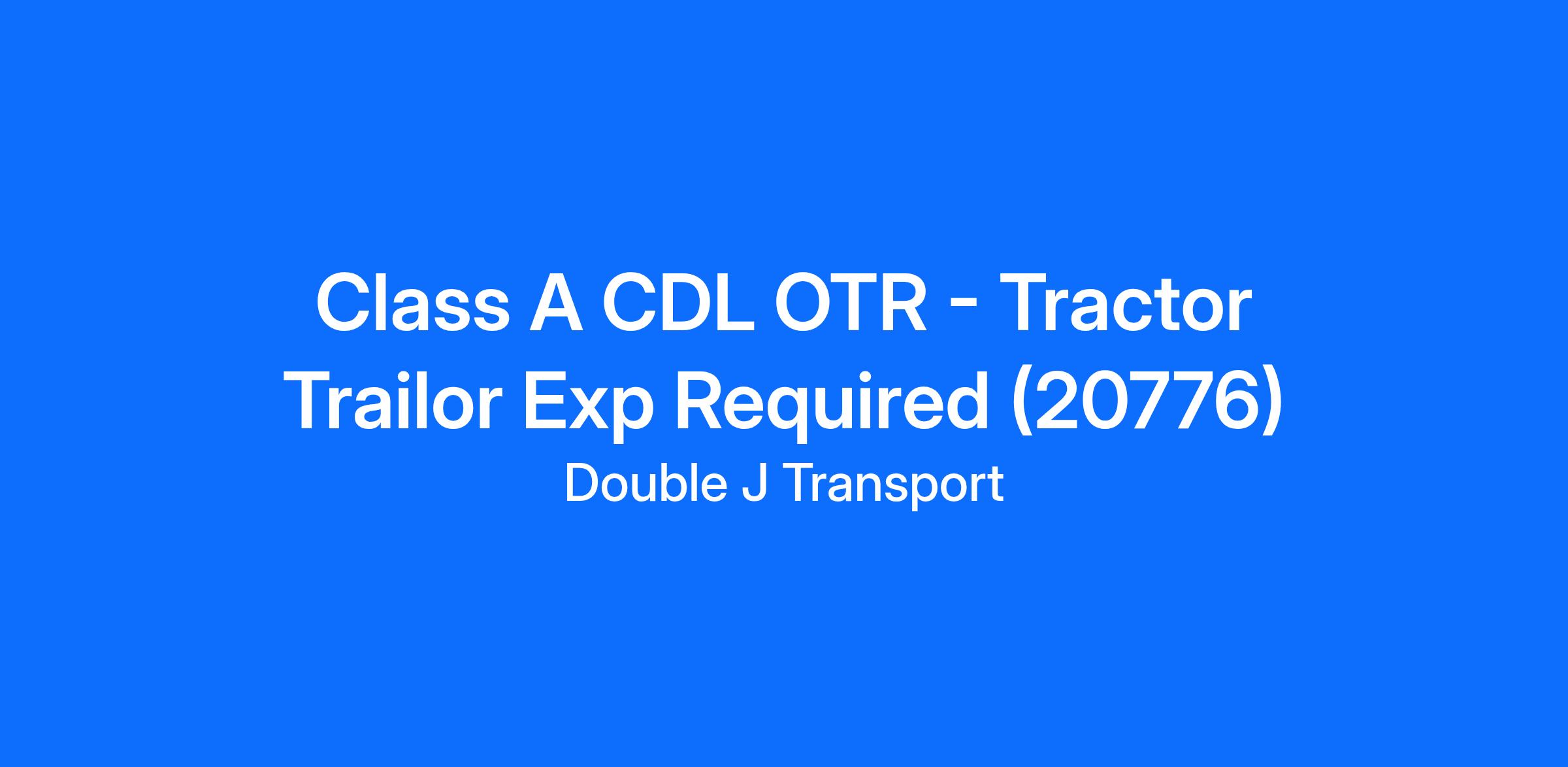 Class A CDL OTR - Tractor Trailor Exp Required (20776)