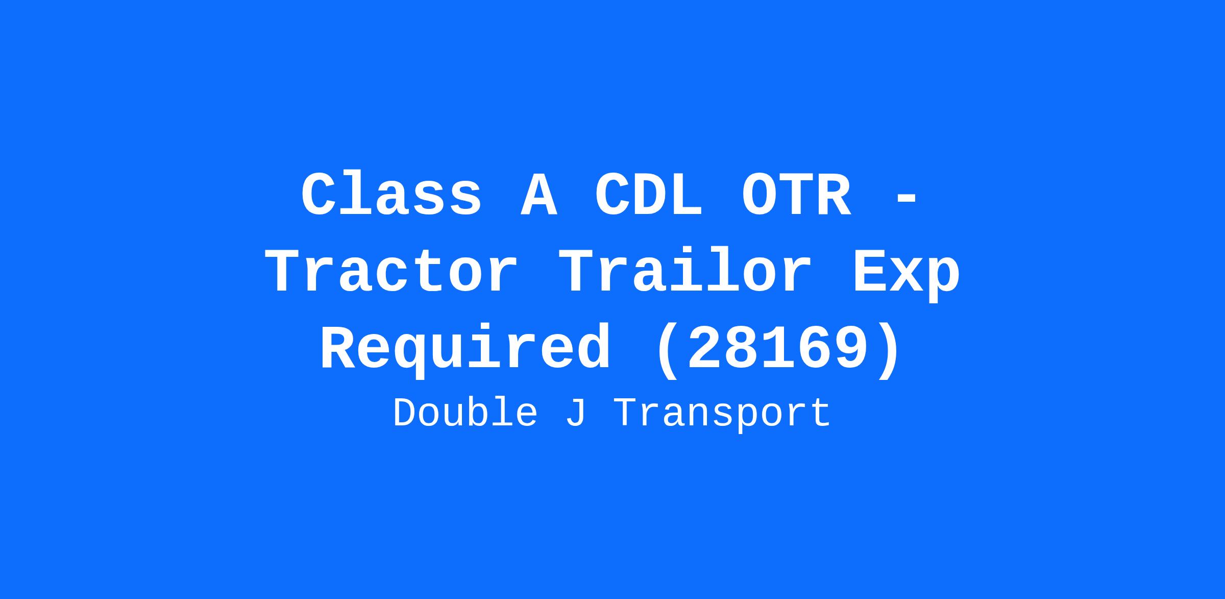 Class A CDL OTR - Tractor Trailor Exp Required (28169)