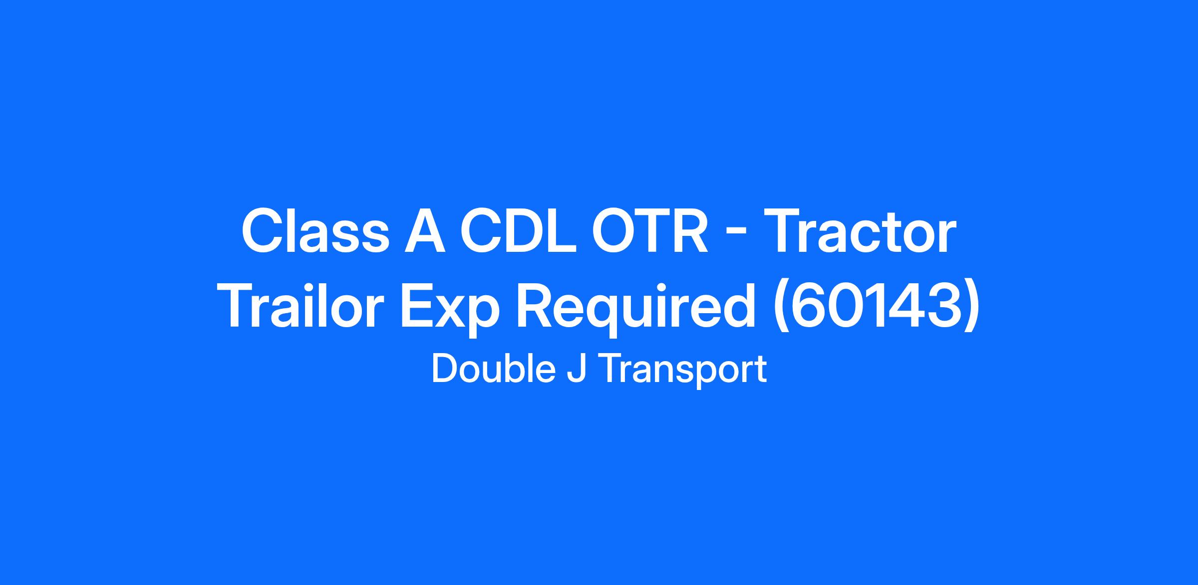 Class A CDL OTR - Tractor Trailor Exp Required (60143)