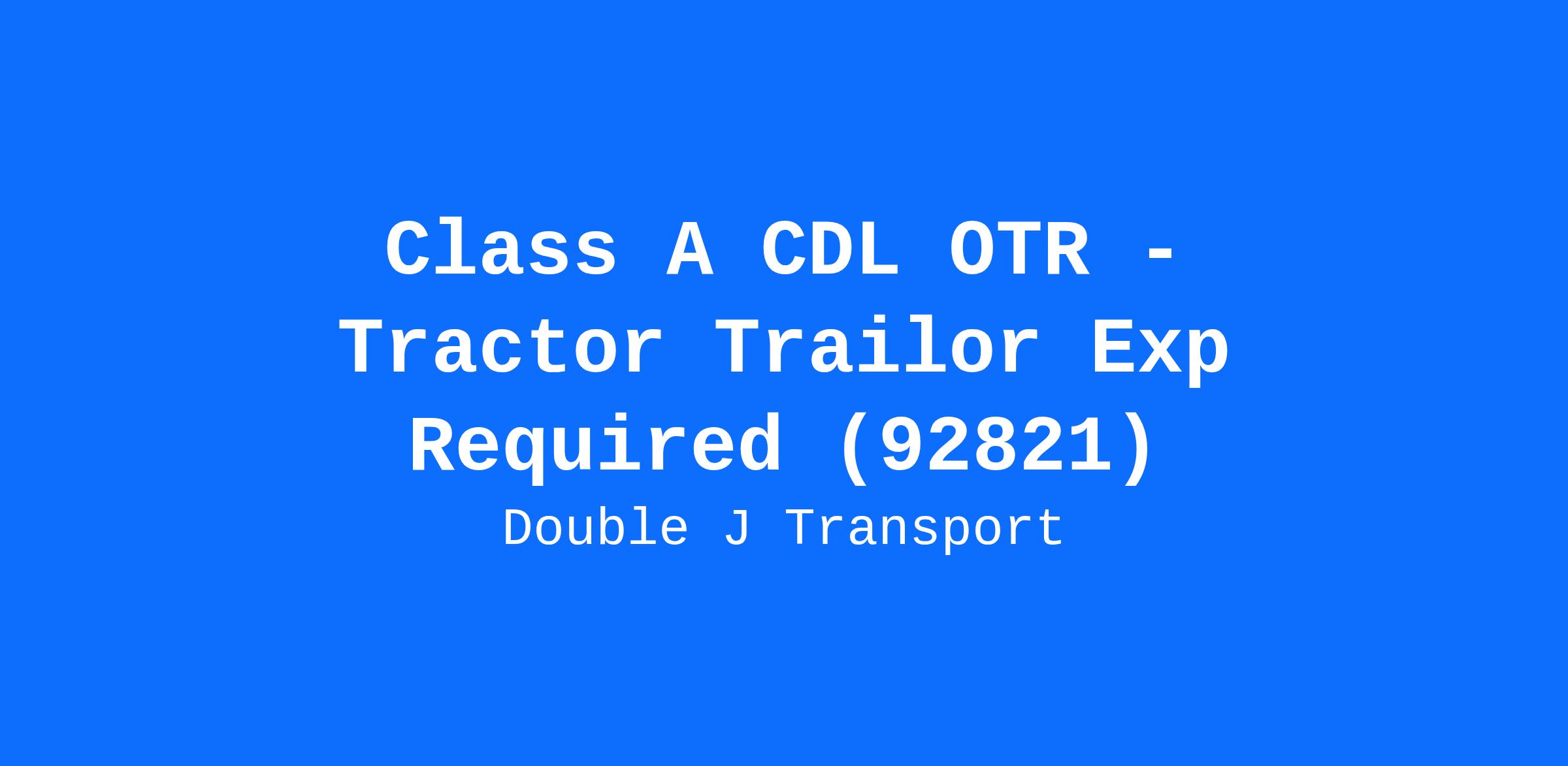 Class A CDL OTR - Tractor Trailor Exp Required (92821)