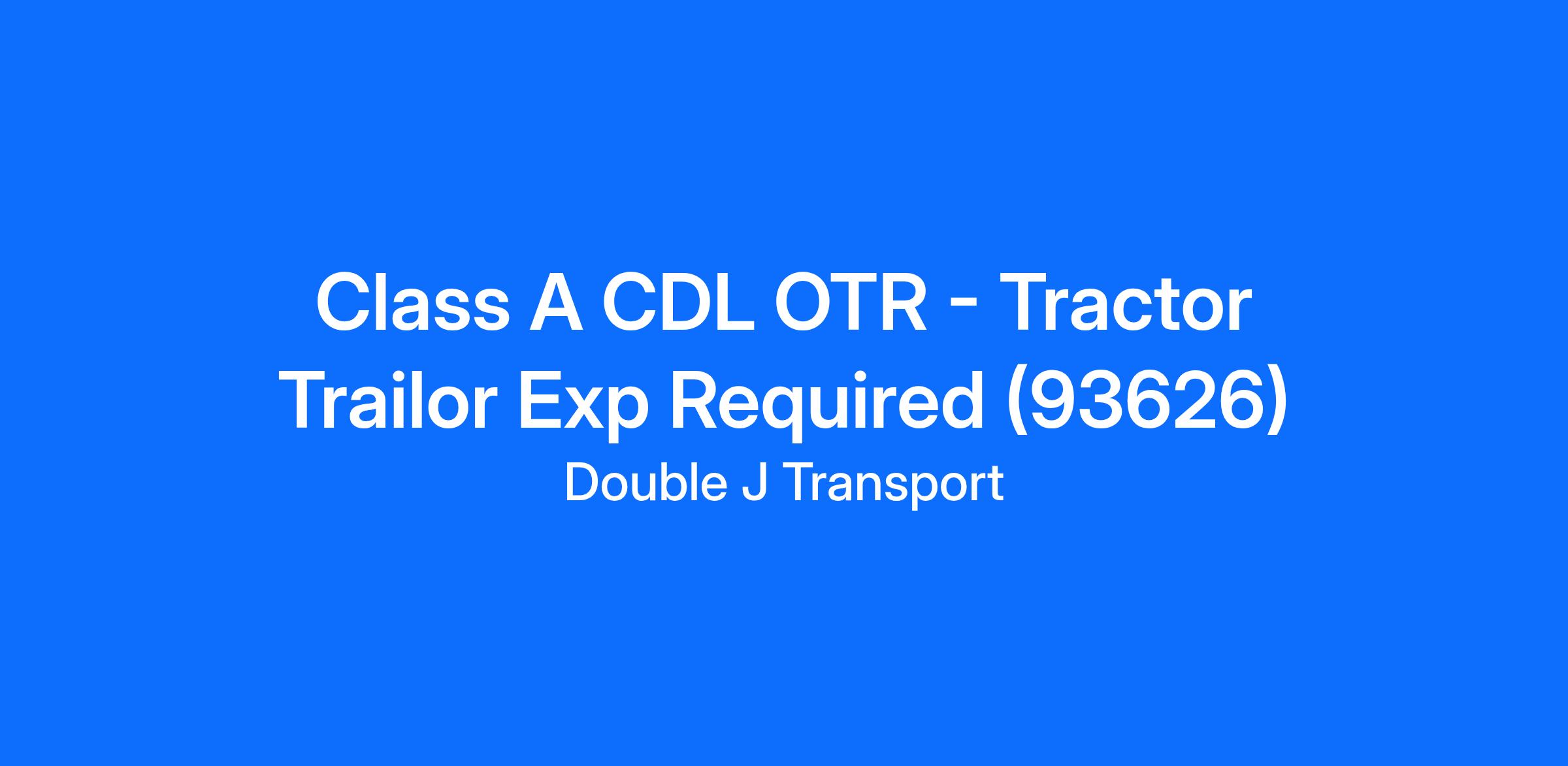 Class A CDL OTR - Tractor Trailor Exp Required (93626)