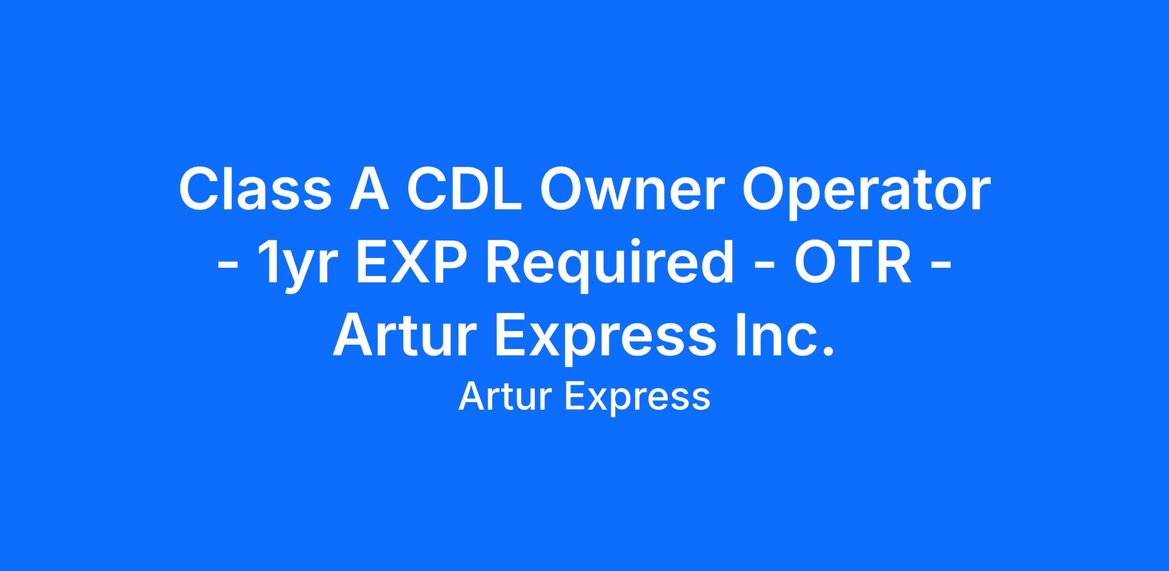 Class A CDL Owner Operator - 1yr EXP Required - OTR - Artur Express Inc.
