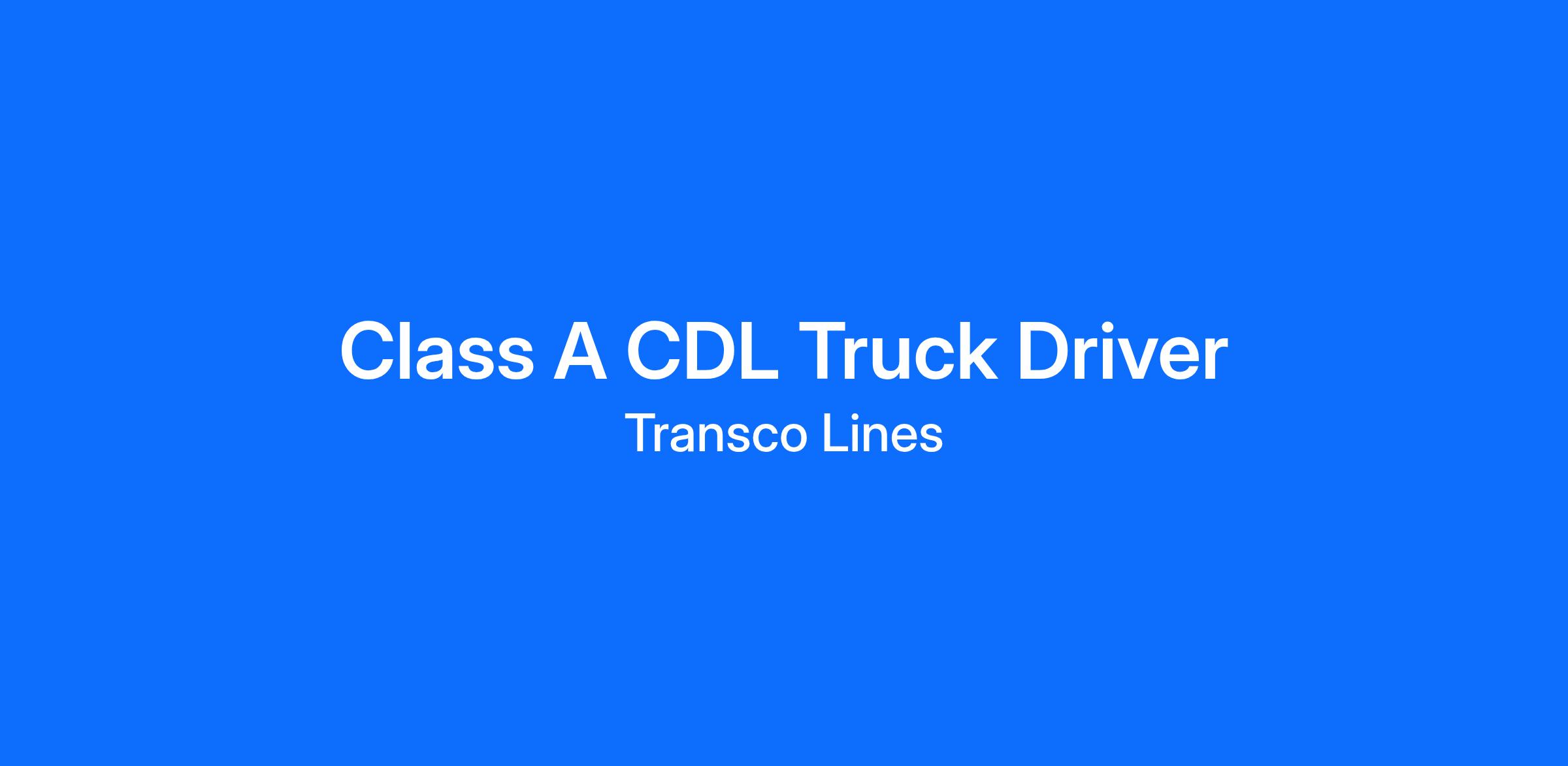 Success By The Mile We know being a driver is tough. That's why we make sure you not only get great pay, but also the home time to help you enjoy it. You'll always get the utmost respect, appreciation, and support at Transco Lines. Learn more today and see for yourself. Class A CDL Truck Driver