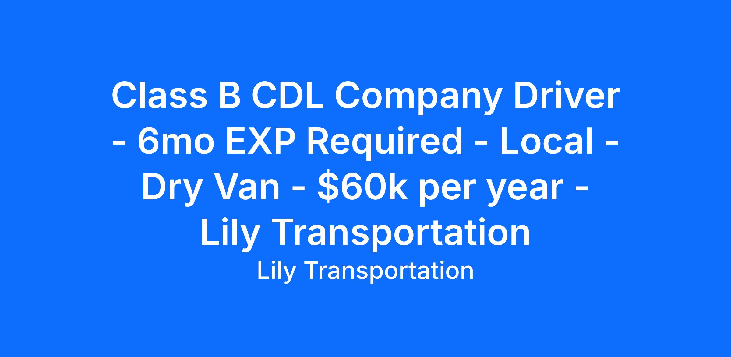 We realize that in today's job market you have many driving options. Lily strives to offer you the perks, work schedule and reliable equipment you're looking for so that you can rest easy in your decision to make Lily Transportation the final stop in your driving career search. Pay Range: 1100.00-1100.00 per_week, General Benefits: Local CDL-B Truck Driver Benefits + Perks: Blue Cross Blue Shield - medical and dental Vision Insurance 401k with matching company contribution Paid Time Off - Vacation, Sick Get 6 Paid Holidays EveryYear Incentive and Recognition Programs Employee Assistance Plan (EAP) Quarterly + Annual Safety Bonuses Cell Phone Allowance Company branded clothing plus Red Wing boots up to ($130.00 voucher) Elite Driver Program Awards Room for Advancement