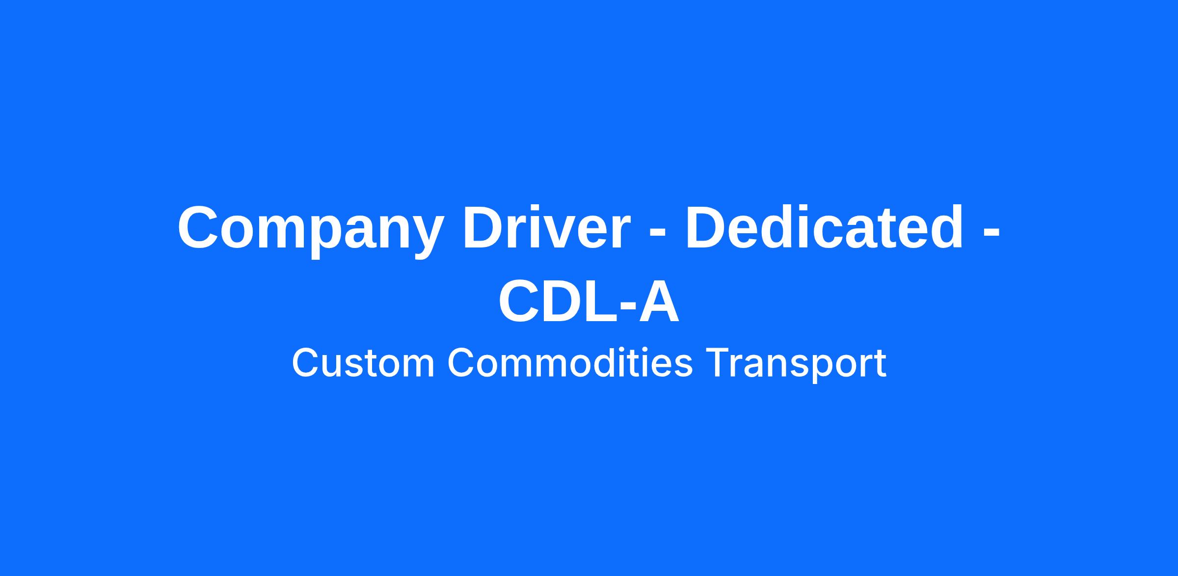 Transportation is not about trucks and trailers, this is a People business. YOU - Our Professional Truck Driver are the most important stakeholder we serve. Hazmat Tanker Jobs | $1,800 avg. per week Benefits Drivers averages $1,800 per week Dedicated Weekly home time $4,000 annual safety bonus; $1,000 per quarter Border-crossing bonus Health, vision, dental, and life insurance Employee Health Insurance is just over $100/month! 401k with company match Requirements Valid CDL A Must be at least 23 years of age 2 years of tractor-trailer experience Liquid and Hazmat endorsements 6 days per week Current Passport; some runs deliver in Canada Dedicated customer is located in Karns City, PA Custom Commodities Mission: We are committed to delivering unsurpassed transportation solutions for our customers. We will be the benchmark that customers and competitors use to establish new class standards in Service, Support and Safety. Call Us Today (855) ###-####a25371ca-cde7-4fb6-ba87-2cf40b156c8b