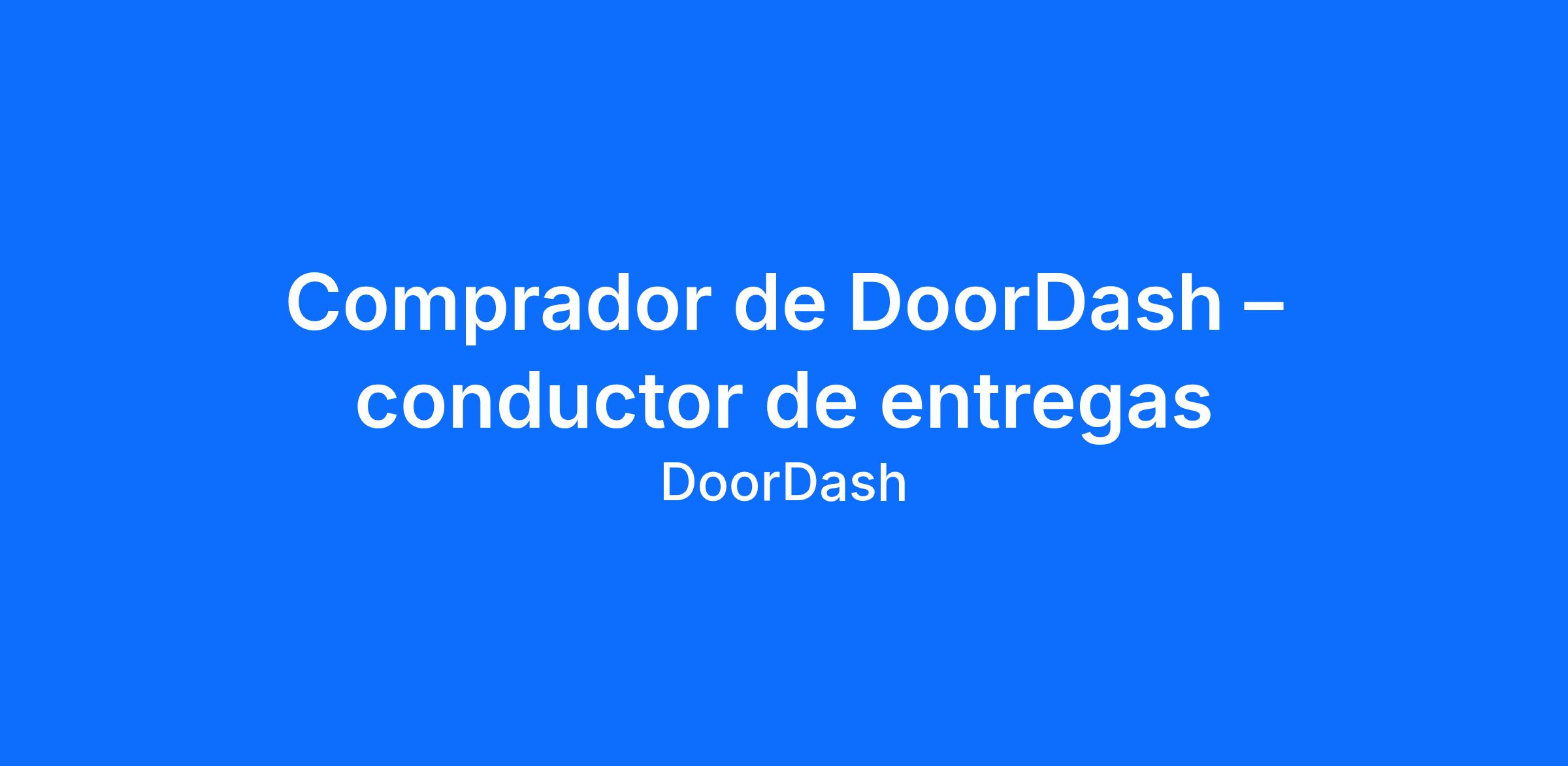 ¿Por qué convertirte en comprador con DoorDash? Convierte tus habilidades de compra en ingresos adicionales. Ya sea que ayudes a alguien a abastecerse de comestibles o entregues una orden de último momento de una tienda de conveniencia, como comprador desbloqueas más oportunidades de ganancias con DoorDash. Mantente activo durante las horas fuera de pico y evita esperar mientras un restaurante prepara una orden. Convertirte en comprador con DoorDash te da el control de tu tiempo y tus ganancias. Ya sea como trabajo adicional o a tiempo completo, ser comprador con DoorDash te brinda la oportunidad de ganar dinero extra bajo tus propios términos. Varias formas de ganar: entrega más que solo órdenes de restaurantes. Conviértete en comprador y entrega comestibles, productos de tiendas de conveniencia, minoristas, alcohol y más. DoorDash ofrece diversas oportunidades de ganancias para que aproveches tu tiempo al máximo. Controla tus tiempos: gana dinero durante las horas fuera de pico para que no tengas que organizar tu día en torno a los horarios de mayor demanda del almuerzo o la cena. Cuando haces las compras, no tienes que esperar una orden. Sabes cuánto ganarás: un modelo de pago claro y conciso te permite conocer el monto mínimo que ganarás antes de aceptar cualquier oferta. Gana más: cuando haces las compras, obtienes en promedio más dinero por entrega que con una entrega de restaurante.* Comienzo rápido y sencillo: regístrate en minutos y sal a hacer dashes rápidamente. Requisitos básicos Mayor de 18 años (mayor de 21 para las entregas de alcohol) Cualquier auto, ciclomotor o bicicleta (en algunas ciudades) Número de licencia de conducir Número del seguro social (solo en EE. UU.) Acceso consistente a un teléfono inteligente Cómo convertirse en comprador Haz clic en “Registrarse y postularse ahora” y completa el proceso de registro. Descarga la aplicación Dasher de DoorDash. Activa tu Tarjeta roja en la aplicación Dasher. *Comparado con una orden de entrega de restaurante, según los pagos promedio de Dashers a nivel nacional mientras realizan entregas. Las ganancias reales pueden variar y dependen de factores como la cantidad de entregas realizadas, la hora del día, la ubicación y los gastos. Sujeto a elegibilidad. Debes ser mayor de 19 años en Arizona, California, Colorado, Delaware, Florida, Georgia, Idaho, Kentucky, Montana, Nueva Jersey, Nuevo Mexico, Texas, Utah y Virginia del Oeste. La Tarjeta roja es una tarjeta prepagada que usan los Dashers para pagar artículos en las ofertas compra y entrega. Los fondos se cargan automáticamente antes de pagar. Las Tarjetas rojas no están vinculadas a las cuentas bancarias de los Dashers ni a sus ganancias. La tarjeta es emitida por Peoples Trust Company bajo licencia de Mastercard International Incorporated. Mastercard es una marca registrada y el diseño de los círculos es una marca registrada de Mastercard International Incorporated. Información adicional Hacer dashes con DoorDash es una gran oportunidad de obtener ganancias para cualquier persona que busque un trabajo de entregas a medio tiempo, estacional, flexible, los fines de semana, después de la escuela, temporario o estable. Entrega con DoorDash y gana dinero extra mientras te conviertes en tu propio jefe. Haz dashes cuando más te convenga. Regístrate hoy.