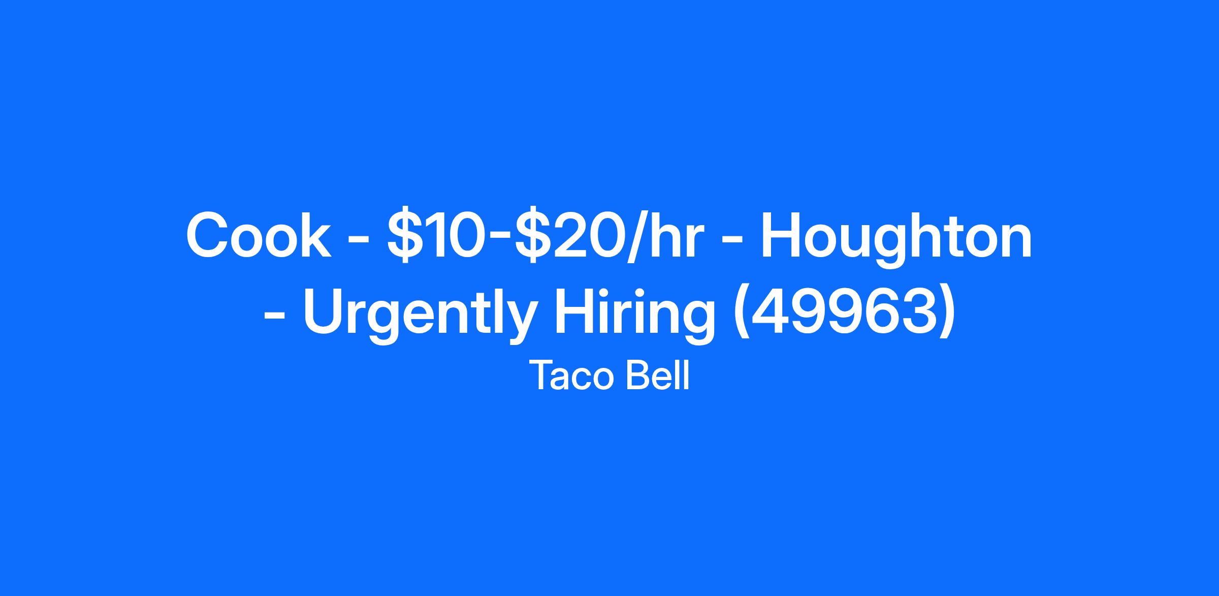 Cook - $10-$20/hr - Houghton - Urgently Hiring (49963)