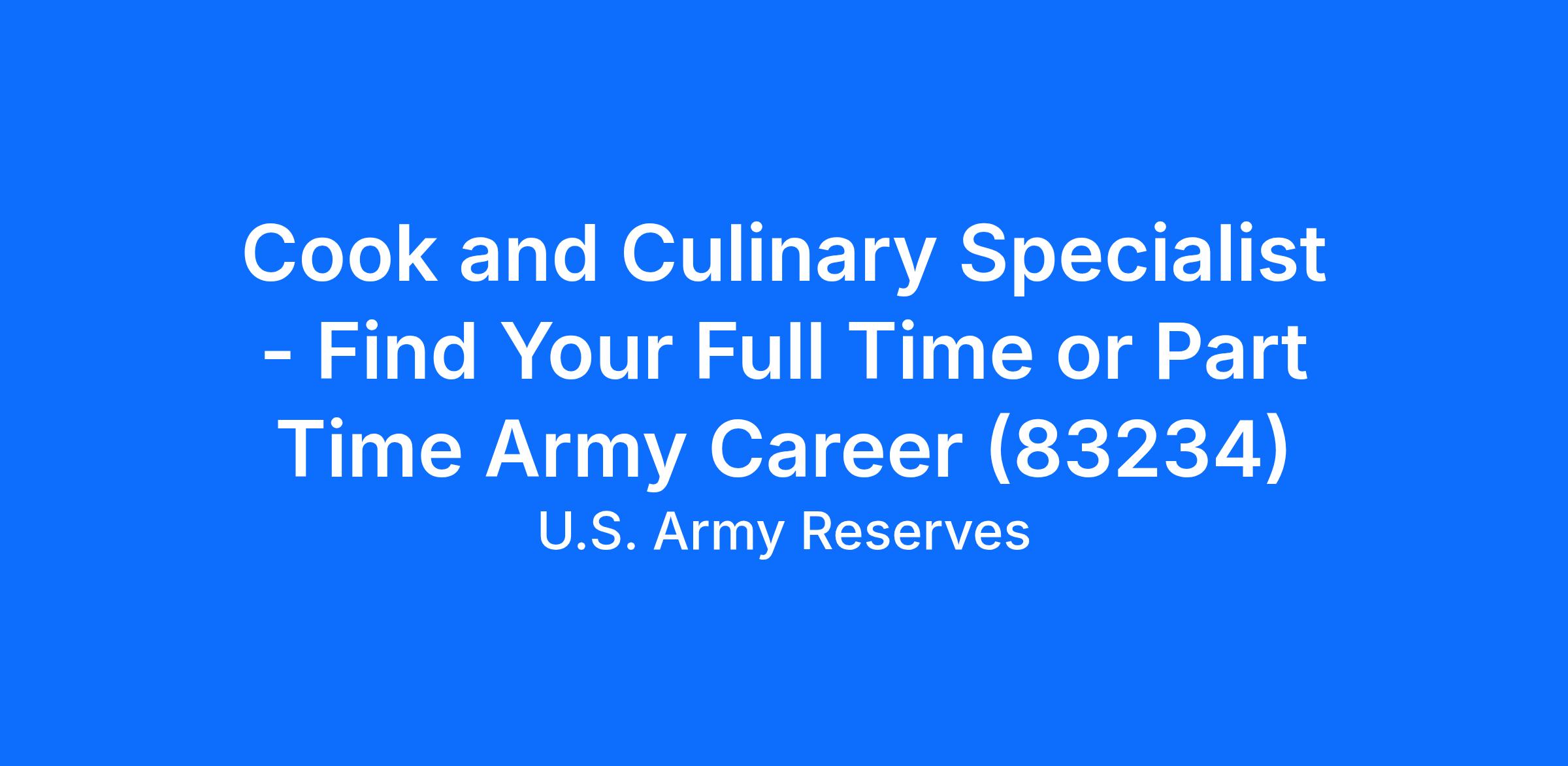 Cook and Culinary Specialist - Find Your Full Time or Part Time Army Career (83234)
