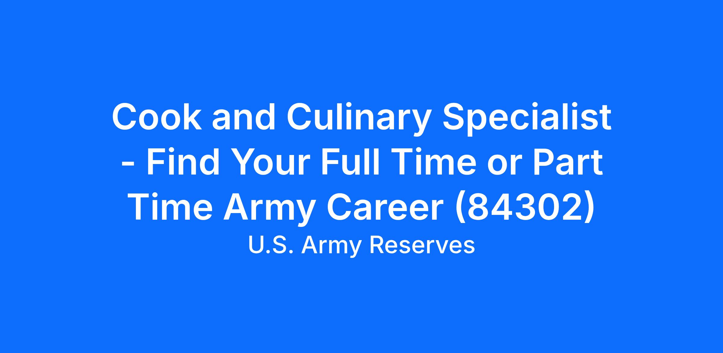 Cook and Culinary Specialist - Find Your Full Time or Part Time Army Career (84302)