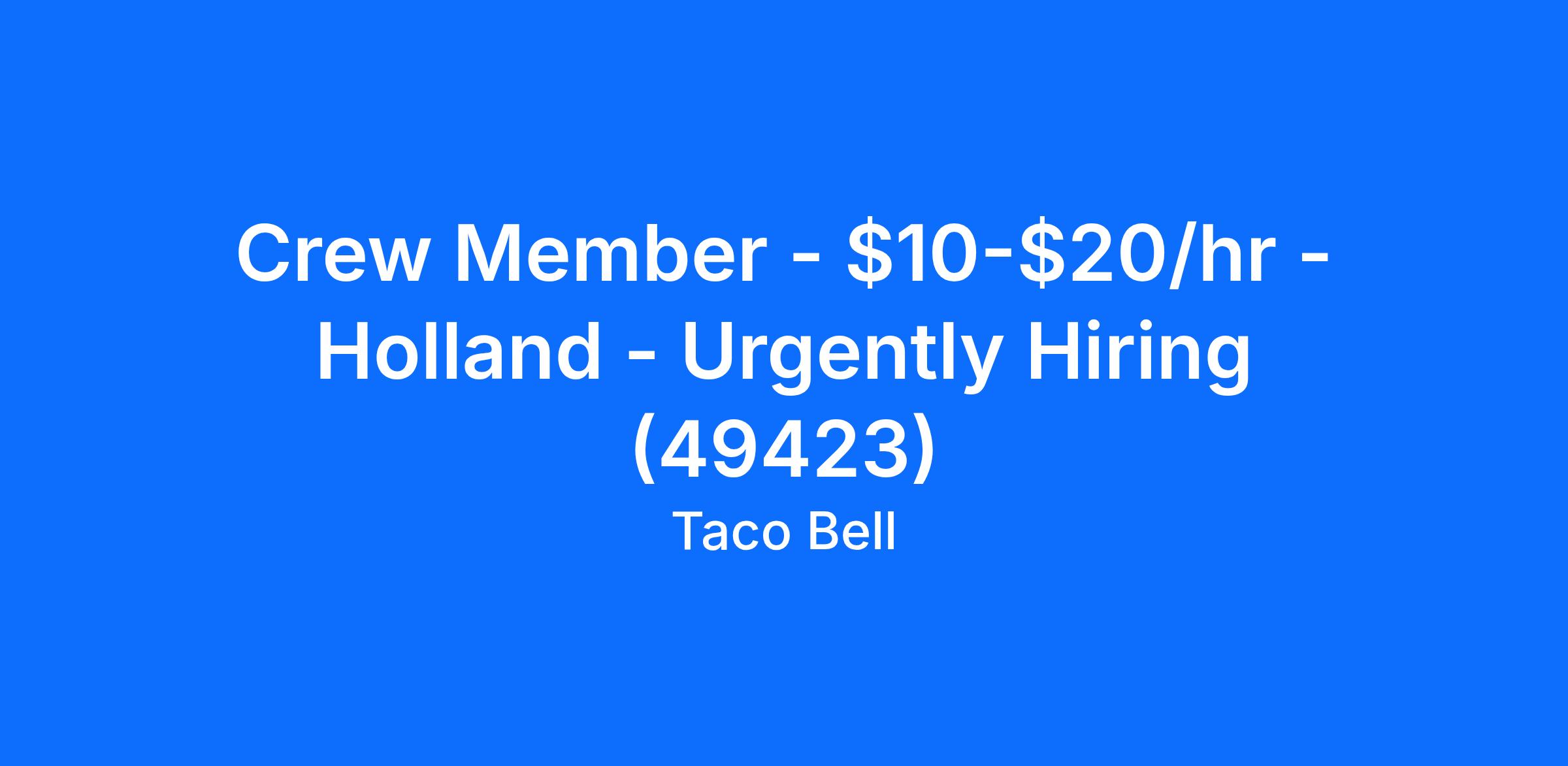 Crew Member - $10-$20/hr - Holland - Urgently Hiring (49423)