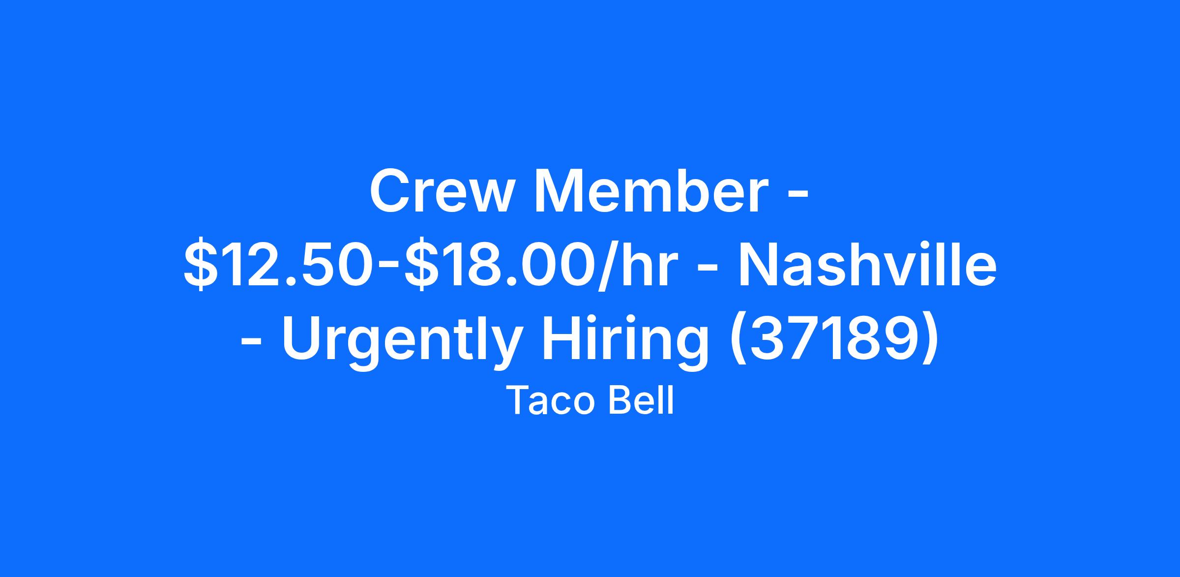 Crew Member - $12.50-$18.00/hr - Nashville - Urgently Hiring (37189)