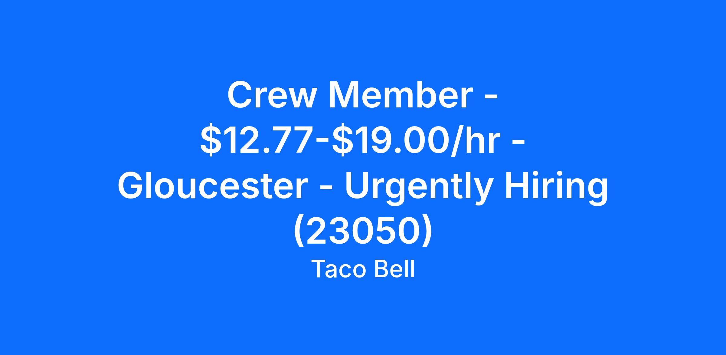 Crew Member - $12.77-$19.00/hr - Gloucester - Urgently Hiring (23050)