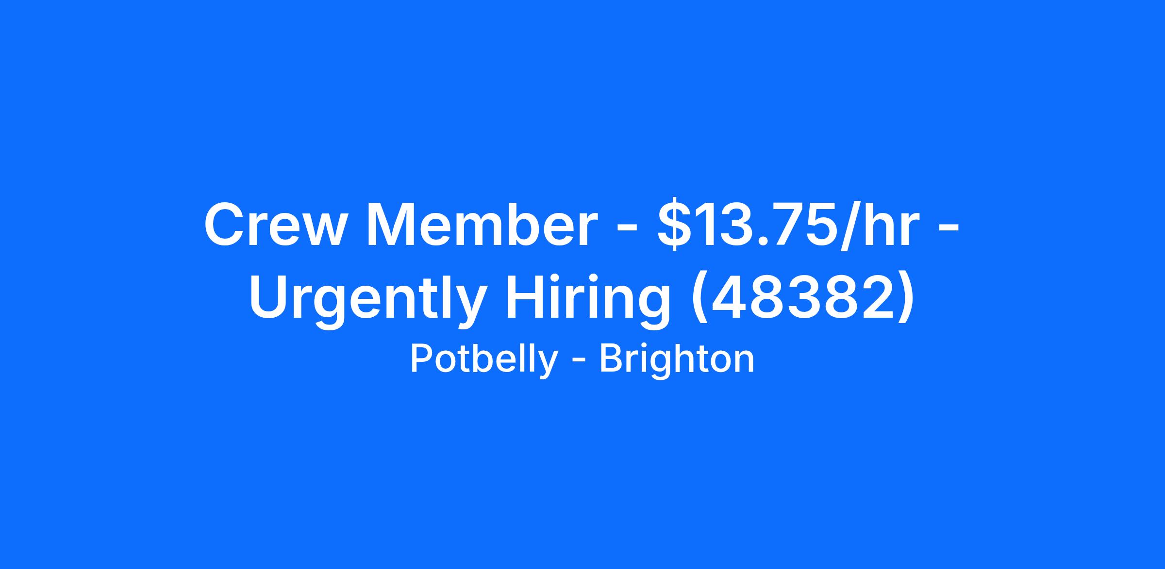 We can't wait to see you for an interview for our full time or part time crew member position at Potbelly - Brighton. Apply now!