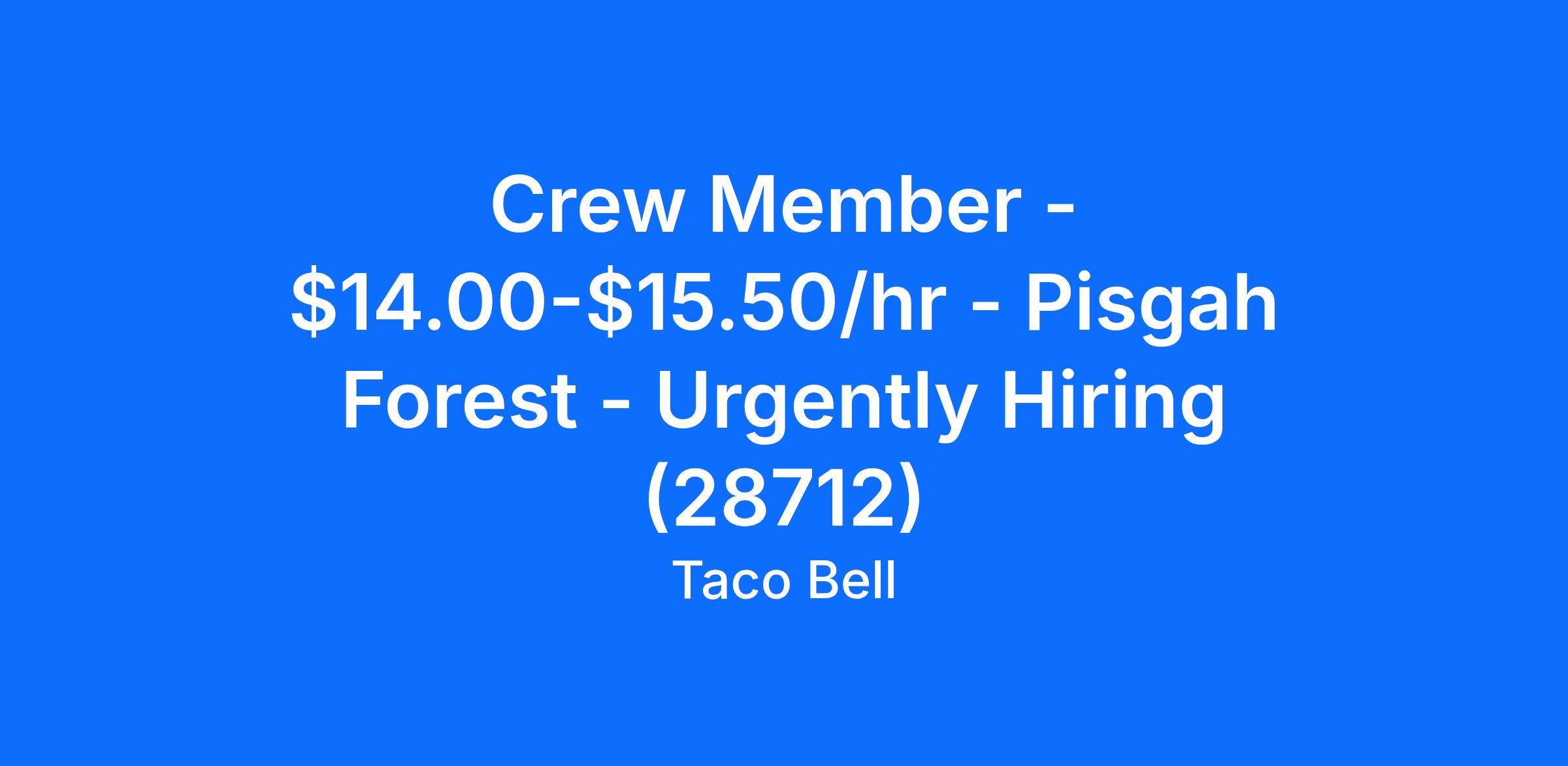 -Not only will you work with our crew members, you will be part of an overall team helping to support the success of Taco Bell - Pisgah Forest