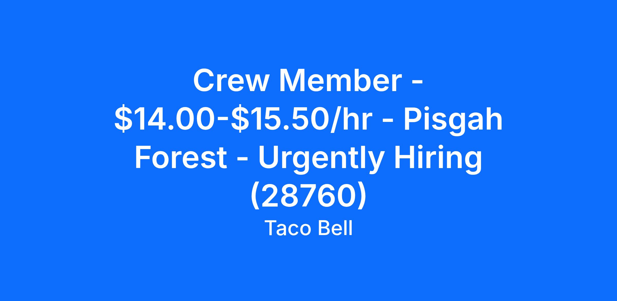 -Not only will you work with our crew members, you will be part of an overall team helping to support the success of Taco Bell - Pisgah Forest