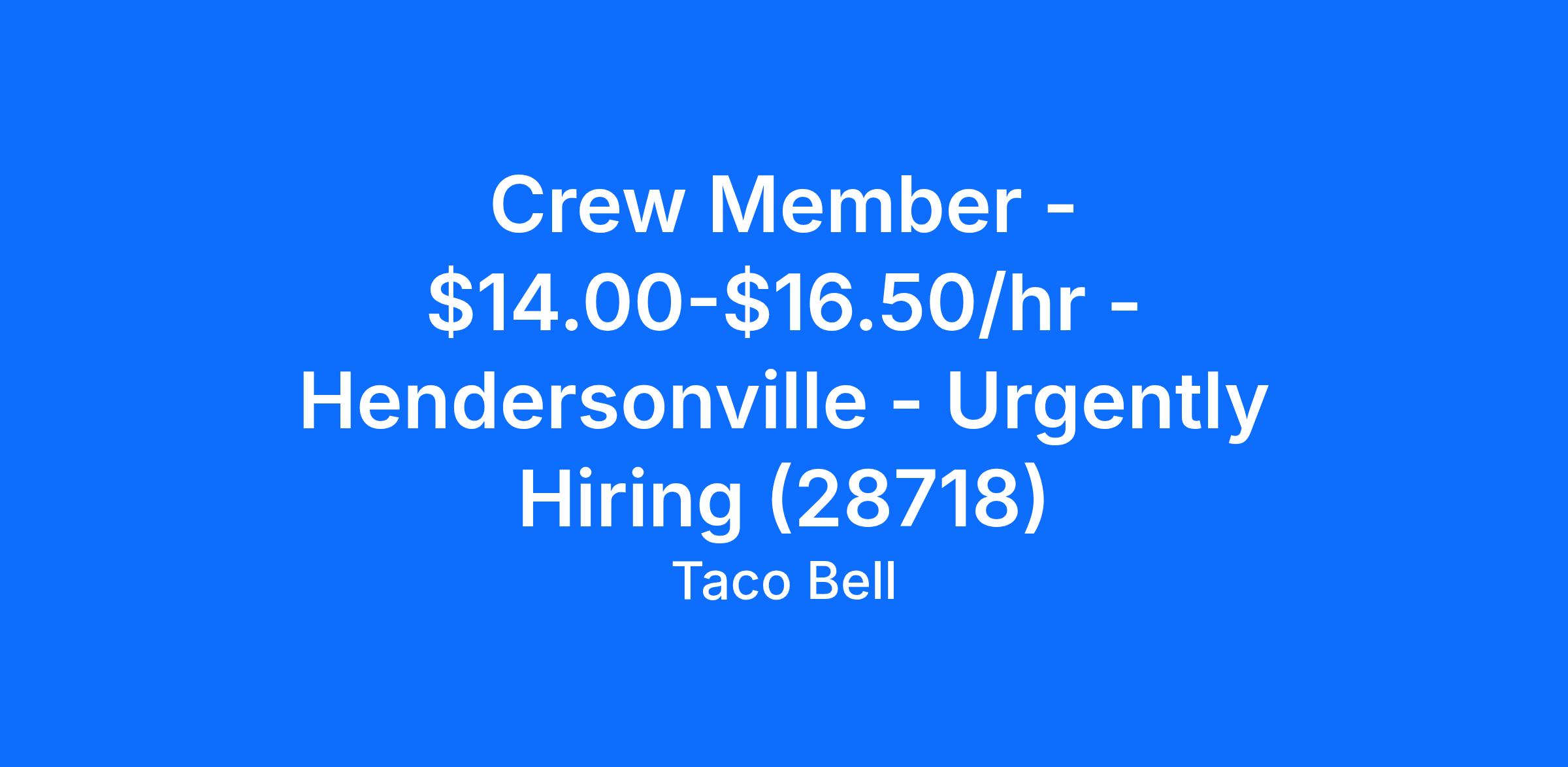-Not only will you work with our crew members, you will be part of an overall team helping to support the success of Taco Bell - Hendersonville