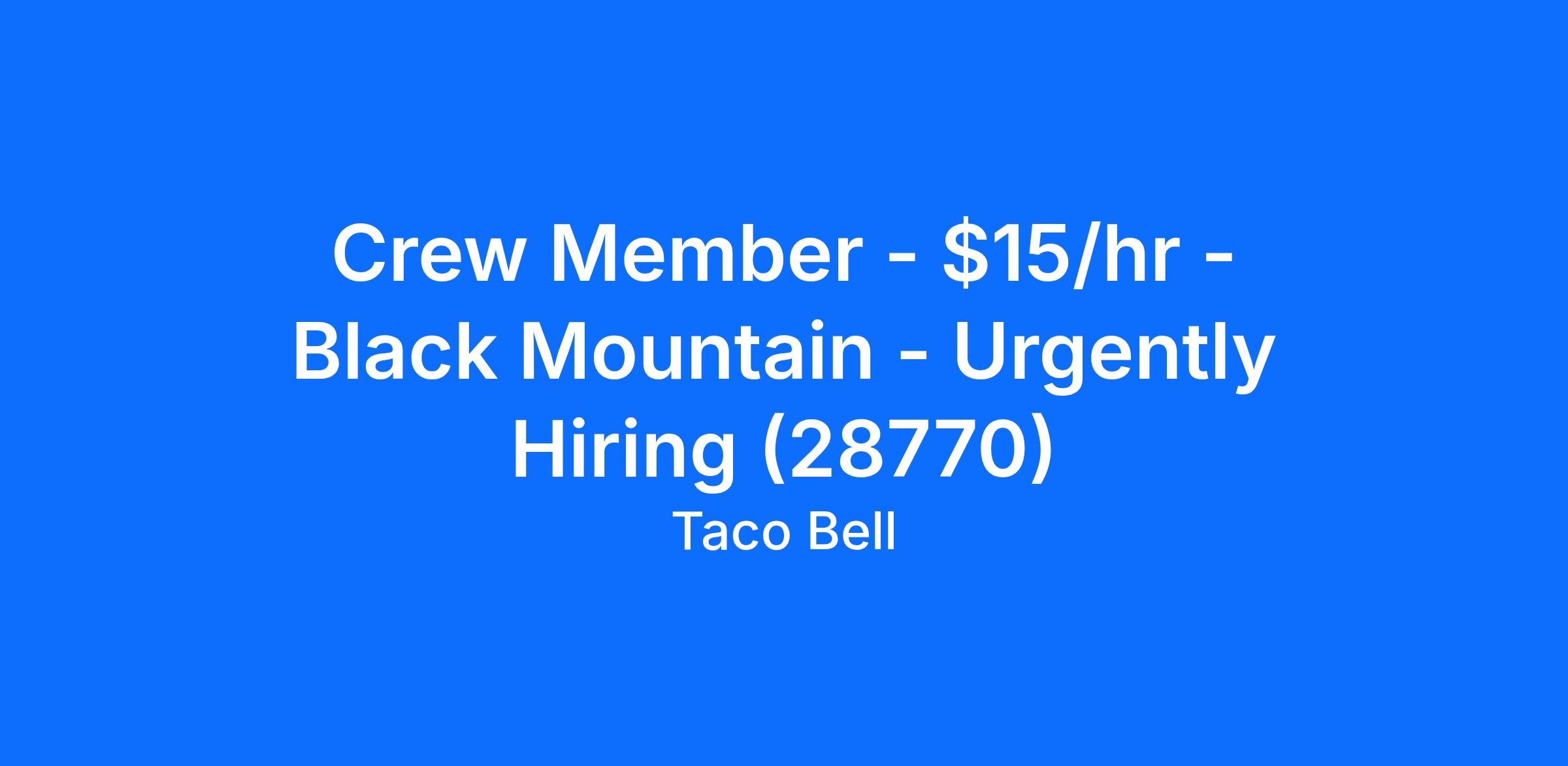 -Not only will you work with our crew members, you will be part of an overall team helping to support the success of Taco Bell - Black Mountain