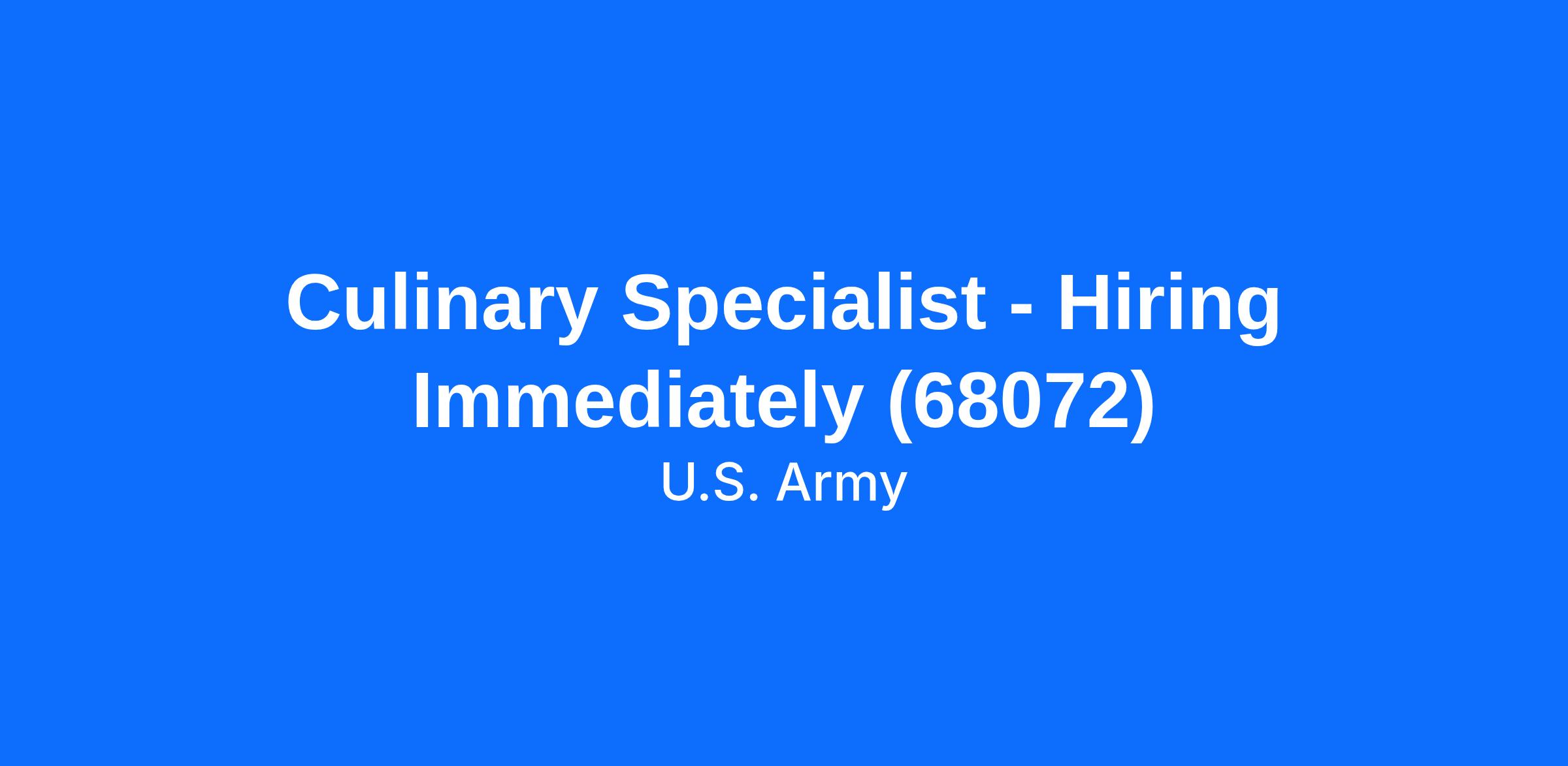 Culinary Specialist - Hiring Immediately (68072)