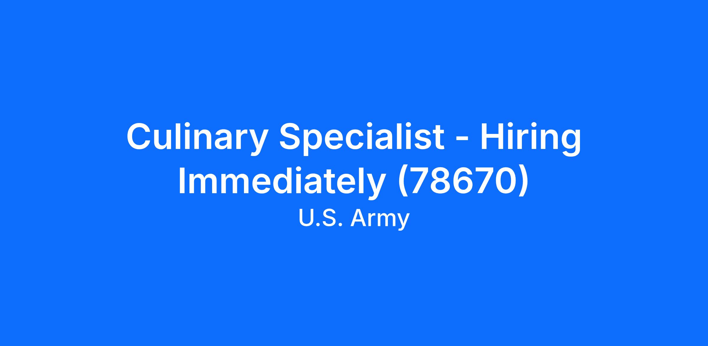 Culinary Specialist - Hiring Immediately (78670)