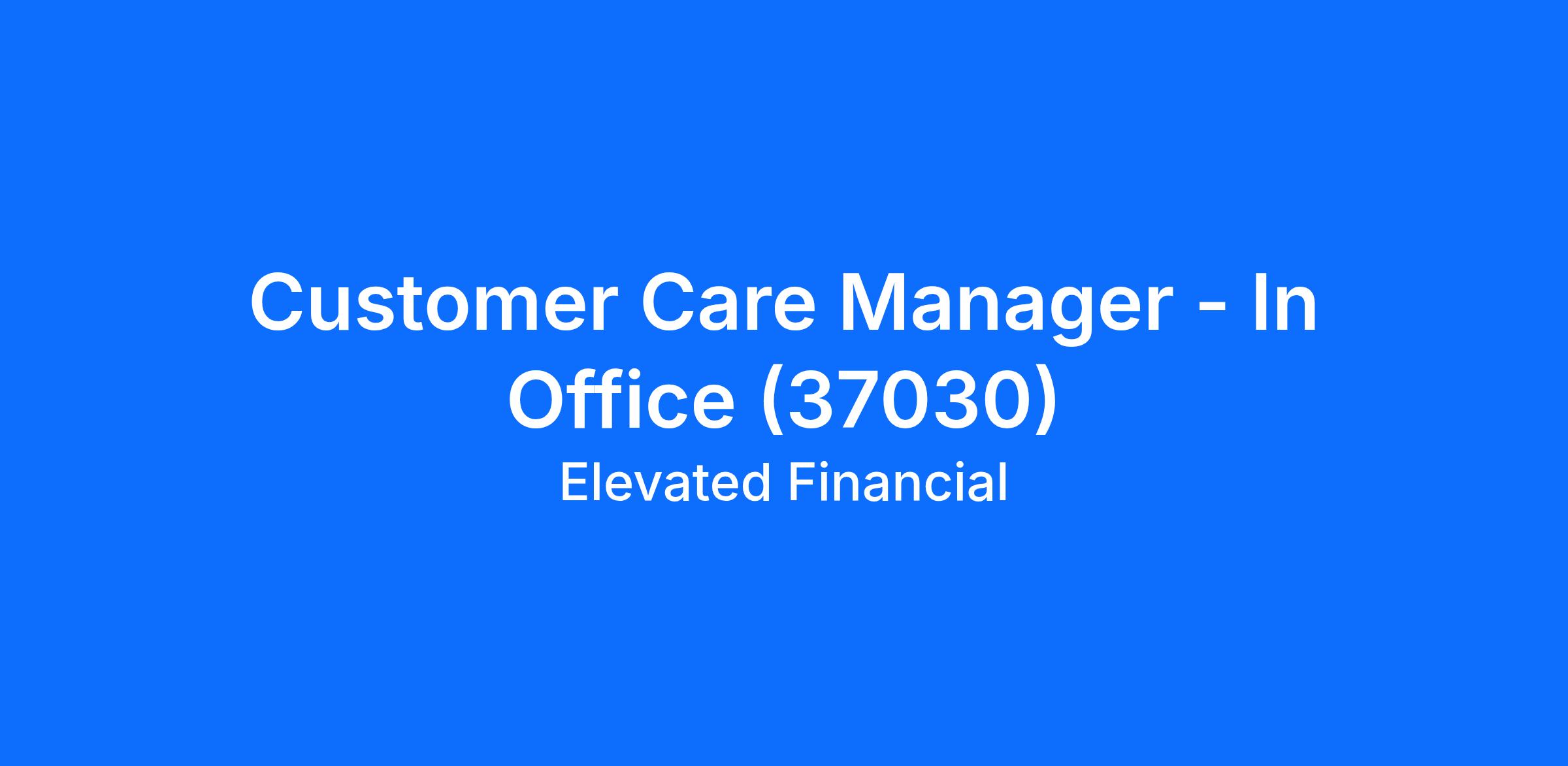 Customer Care Manager - In Office (37030)