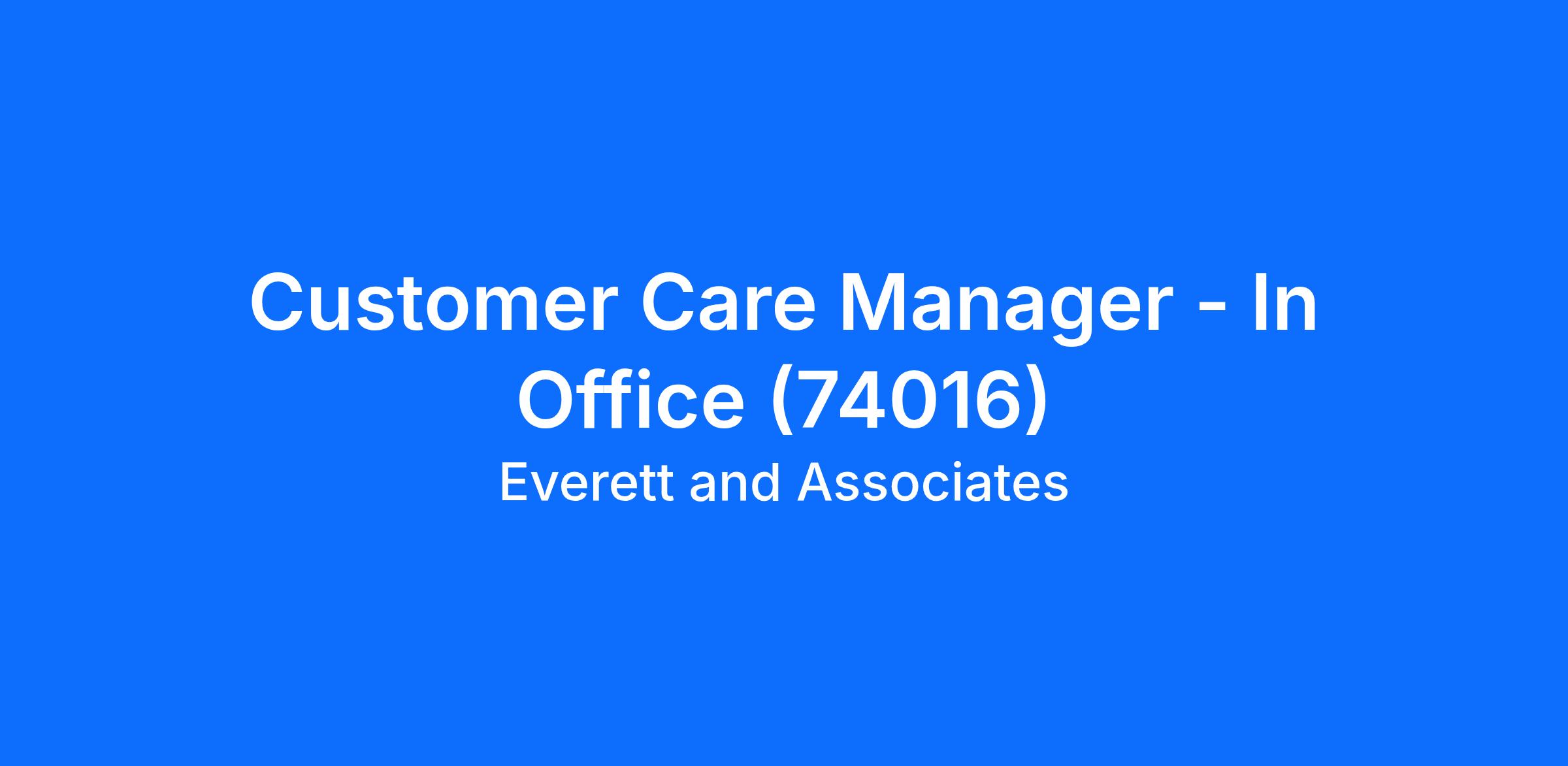 Customer Care Manager - In Office (74016)
