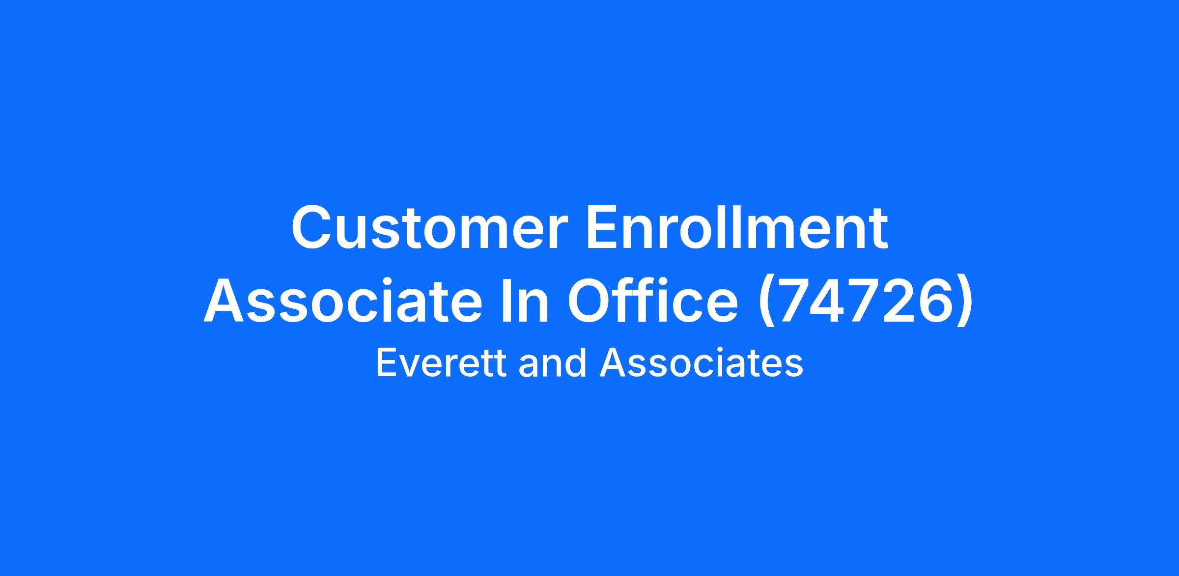 Customer Enrollment Associate In Office (74726)