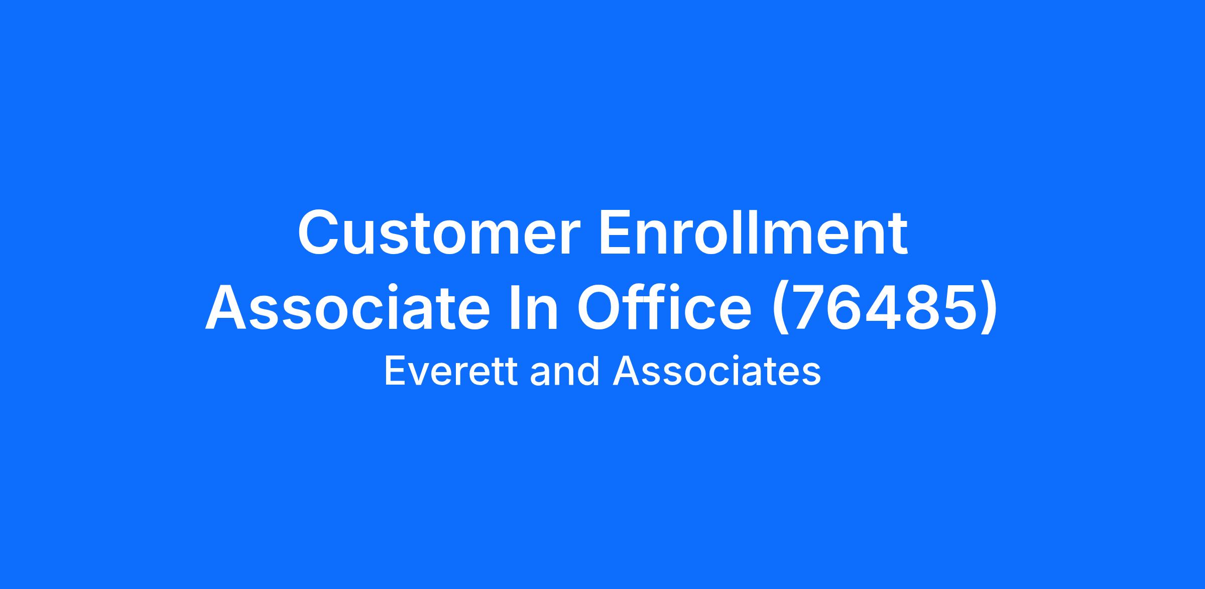 Customer Enrollment Associate In Office (76485)
