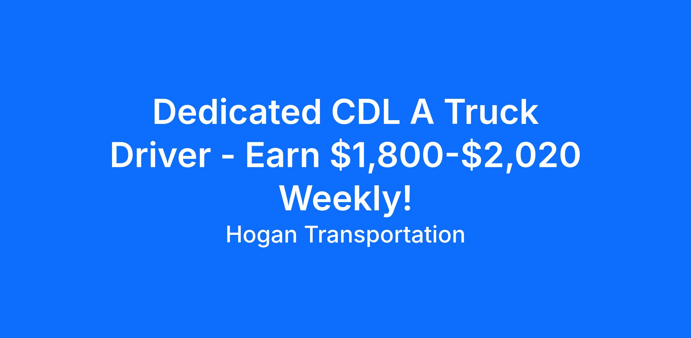 Dedicated CDL A Truck Driver - Earn $1,800-$2,020 Weekly!
