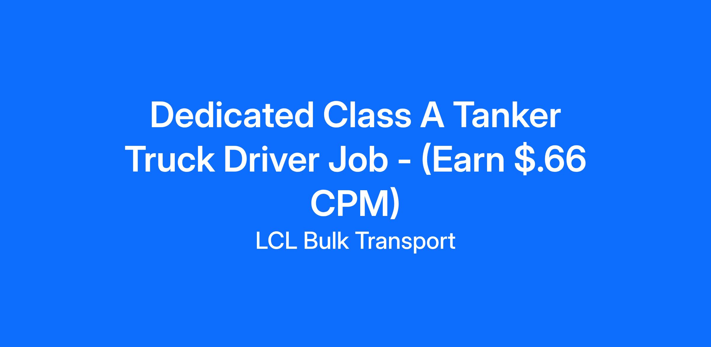 OTR & Dedicated Class A CDL Truck DriverLCL Bulk Transport is a family-owned business that was established in 1926 and has built an amazing reputation locally as well as on a national level. Located in Elizabethtown, PA we specialize in hauling chocolate, sweetener and oils for some of the largest food grade manufacturers in the US. Our mission is to provide exceptional service to our customers by being committed to safety, being reliable and providing excellent customer service to our dedicated customer base. LCL Bulk Transport is currently looking for dependable, safety-driven