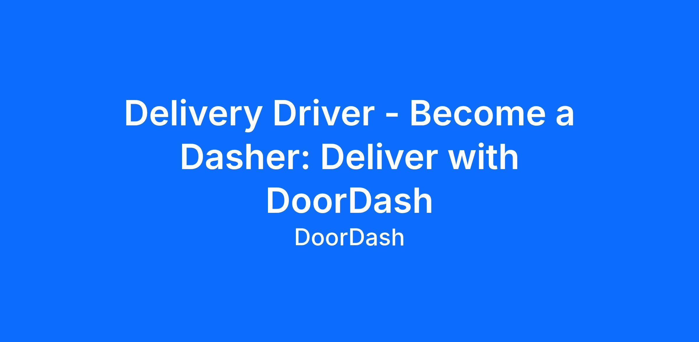Delivery Driver - Become a Dasher: Deliver with DoorDash