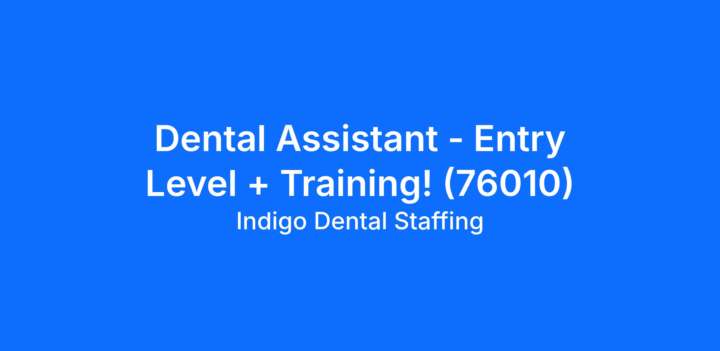 Dental Assistant - Entry Level + Training! (76010)