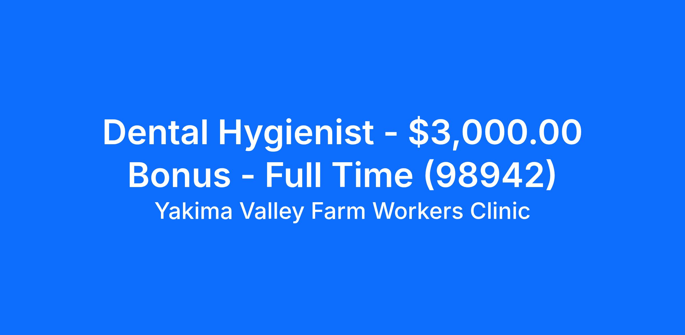 Join our team as a Dental Hygienist at Yakima Medical Dental Clinic in Yakima, WA! Be part of a healthcare organization that believes in making a difference beyond medical care! We've transformed into a leading community health center in the Pacific Northwest with 40+ clinics across Washington and Oregon. We offer a wide range of services such as medical, dental, pharmacy, orthodontia, nutritional counseling, autism screening, and behavioral health. Our holistic model also extends assistance to shelter, energy, weatherization, HIV and AIDS counseling, home visits, and mobile medical/dental clinics.