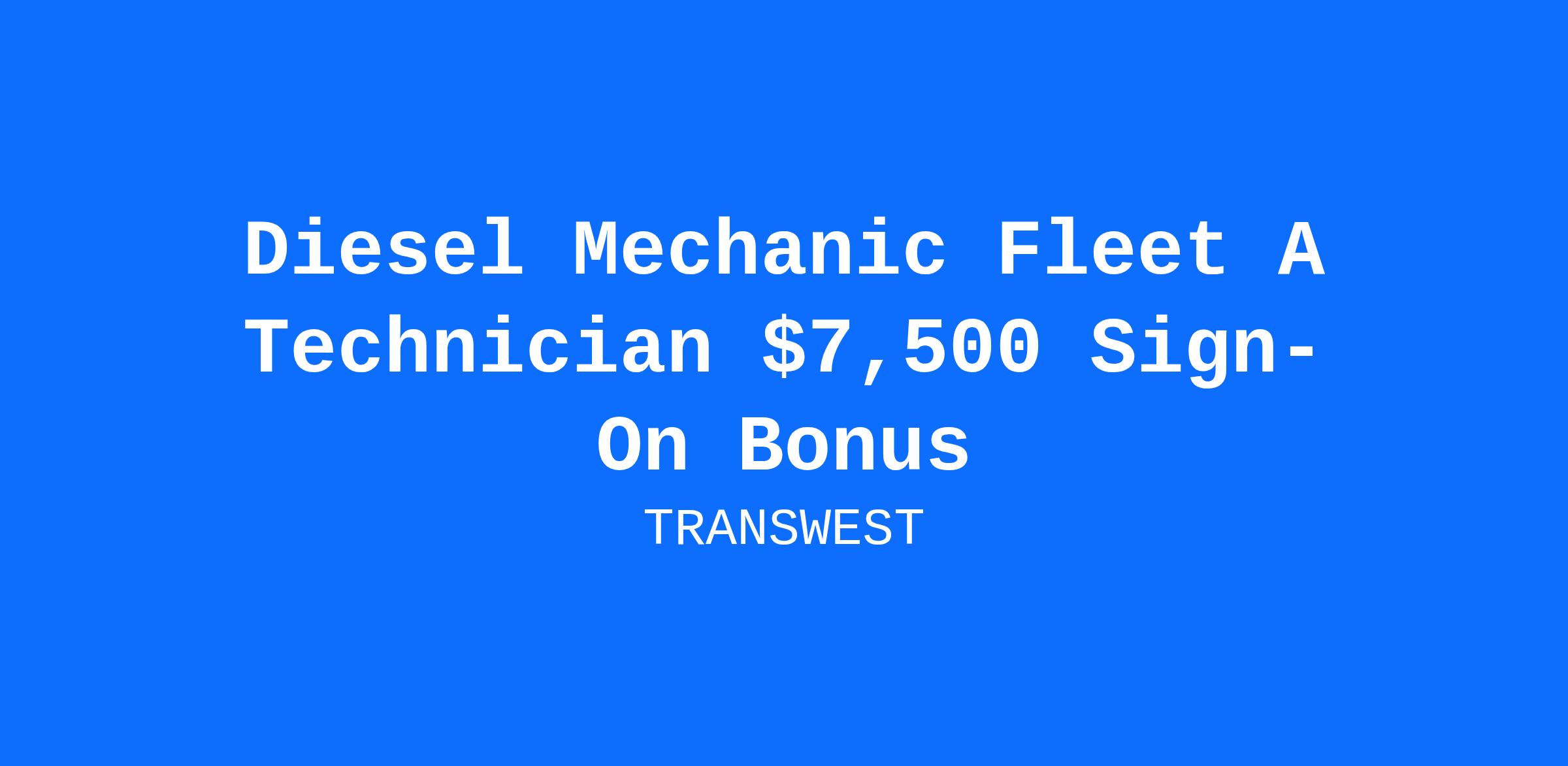 Diesel Mechanic Fleet A Technician $7,500 Sign-On Bonus
