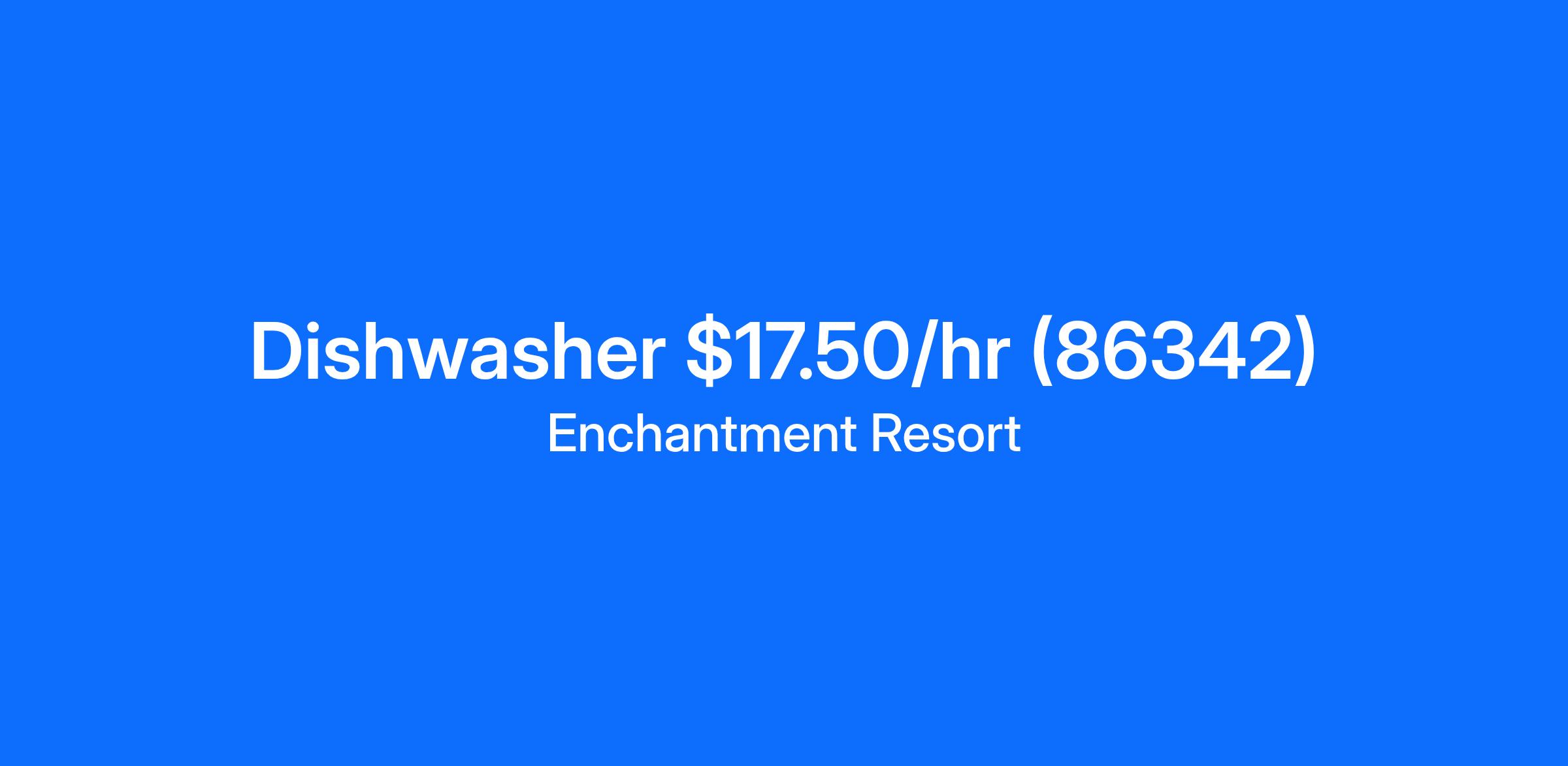Wash all chinaware, glassware, and equipment (pots, pans, utensils, etc.)Put away all clean china, glassware, etc.Maintain cleanliness of the dish-room (wash floors, sinks, walls, etc.)Organize dish-room areaClean up spills and safety hazards immediatelyEmpty garbage and laundry bagsMop floors and clean outside dock area and other common areas Clean and stock food line in employee cafeteria and banquet kitchenClean, maintain, and breakdown dish machine at beginning and end of each shiftComplete checklist while performing closing and opening dutiesAct as an ambassador of Enchantment by speaking positively of the Resort at all timesFoster a work environment of teamwork by assisting co-workers and other departments as necessary to ensure guest satisfactionMust maintain current food handlers certificationOther duties as assigned by management