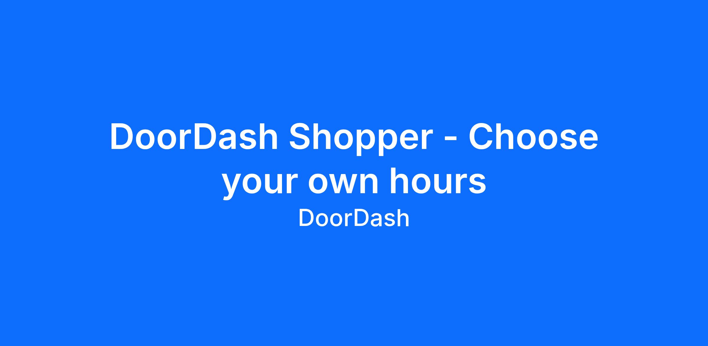 Turn your shopping skills into extra income. Whether you're helping someone stock up on groceries or delivering a last-minute convenience order, as a Shopper you unlock more earnings opportunities with DoorDash. Stay active during off-peak hoursand no need to wait around for a restaurant preparing an order, becoming a Shopper with DoorDash puts you in control of your time and earnings.