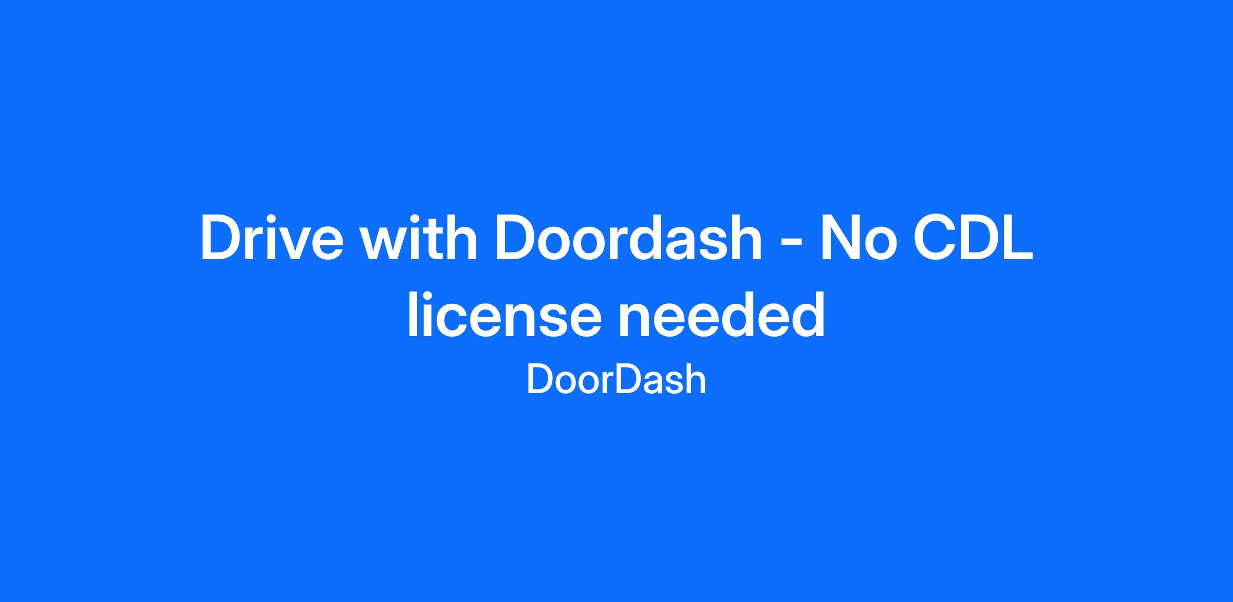 *No CDL needed / No commercial drivers license* *Why Deliver with DoorDash?* DoorDash is the 1 category leader in food delivery, food pickup, and convenience store delivery in the US, trusted by millions of customers every day. As a Dasher, you'll stay busy with a variety of earnings opportunities and can work when it works for you. Whether you're looking for a side hustle or a full-time gig, delivering with DoorDash gives you the opportunity to earn extra cash on your terms. * *Multiple ways to earn: *Whether you're delivering meals, groceries, or retail orders, DoorDash offers diverse earning opportunities so you can maximize your time. * *Total flexibility: *Dash when it works for you. Set your own hours and work as much—or as little—as you want. * *Know how much you'll make:* Clear and concise pay model lets you know the minimum amount you will make before accepting any offer. * *Instant cash flow: *Get paid the same day you dash with DoorDash Crimson*. No deposit fees, no waiting. * *Quick and easy start: *Sign up in minutes and get on the road fast. * *Simple Process: *Just pick up, drop off, and cash out. Payday is in your back pocket. *Basic Requirements* * No CDL / commercial drivers license needed * 18 years old (21 to deliver alcohol) * Any car, scooter, or bicycle (in select cities) * Driver's license number * Social security number (only in the US) * Consistent access to a smartphone *How to Sign Up* * Click “Apply Now” and complete the sign up process * Download the DoorDash Dasher app and go *Subject to eligibility requirements and successful ID verification. The DoorDash Crimson Deposit Account is established by Starion Bank, Member FDIC. The DoorDash Crimson Visa® Debit Card is issued by Starion Bank. Subject to eligibility.