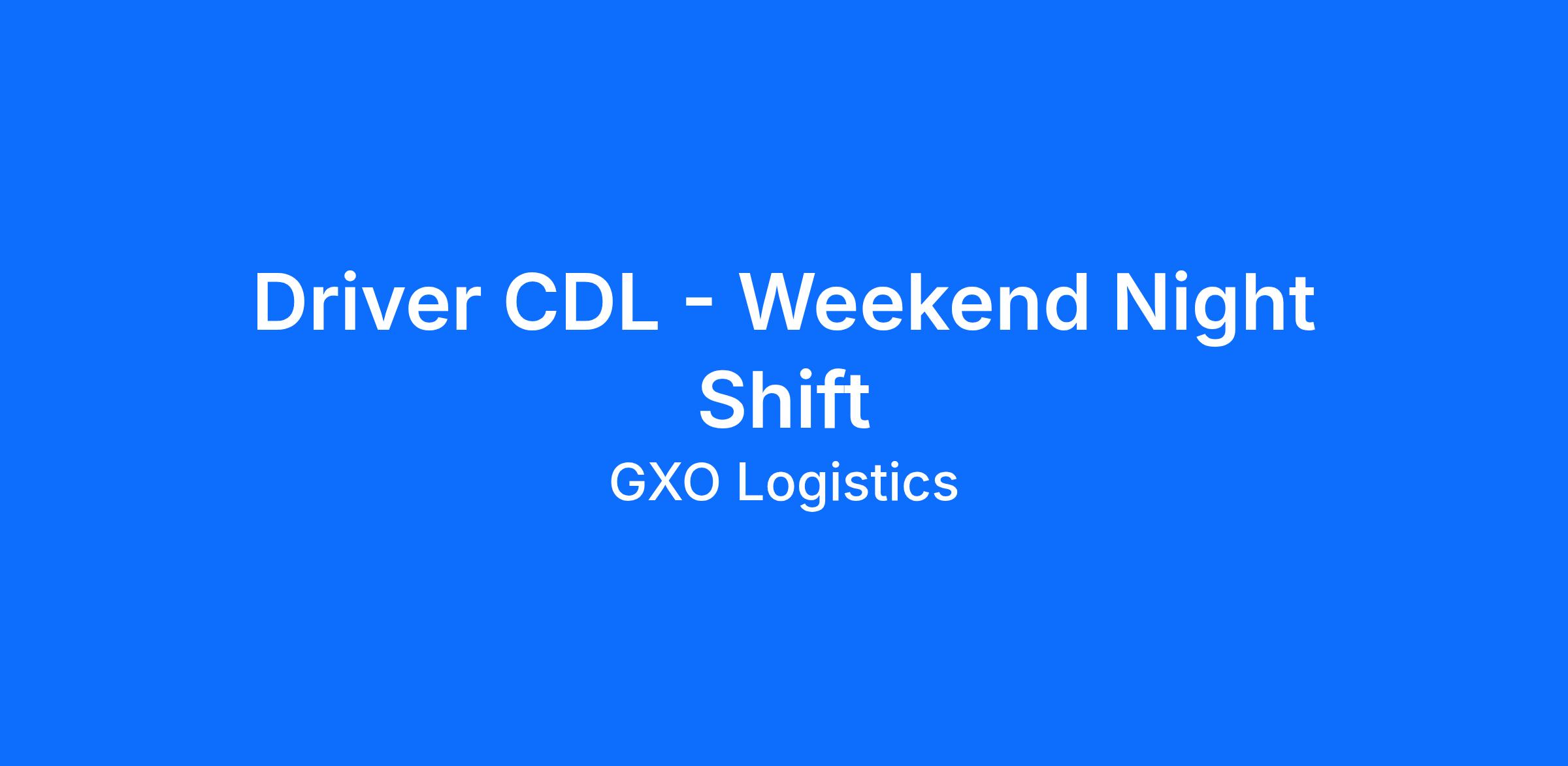GXO Logistics, one of the largest contract logistics companies in the world, is looking for talented individuals at all levels who can deliver the caliber of service our company requires. As a CDL Driver, you'll not only drive our equipment, you will also drive our success! If you have the skills required for this role and a passion for keeping the supply chain moving safely and smoothly, consider joining GXO!