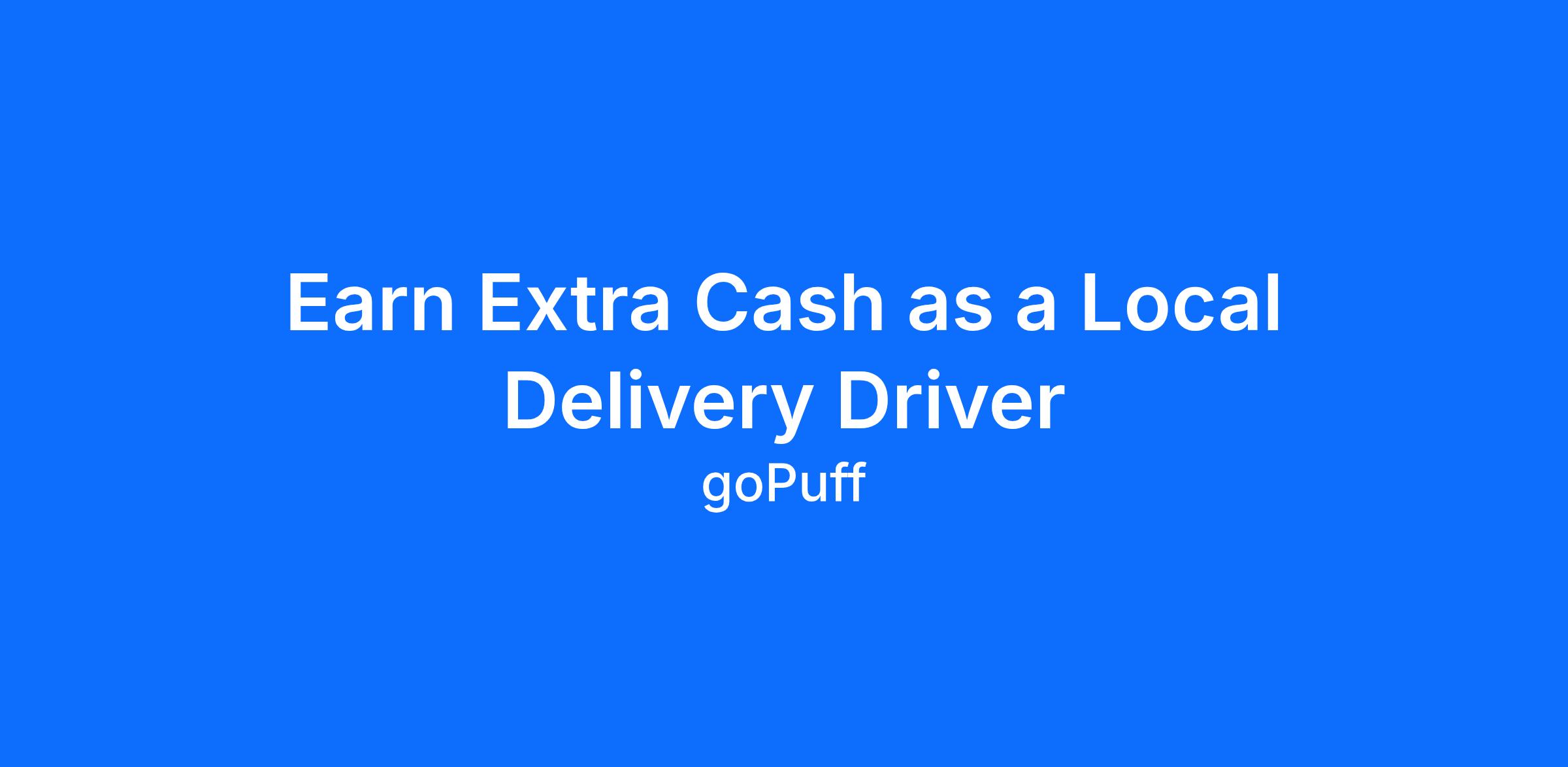 Do more than make ends meet. Deliver with Gopuff and get paid to deliver what your neighbors need from a Gopuff facility near you! With one centralized pickup location and smaller delivery zones, Gopuff makes earning effortless. It's simple: deliver from a facilitynear you straight to the customer! You'll be delivering everyday essentials, from cleaning supplies, home needs and OTC medications to food, drinks and more.
