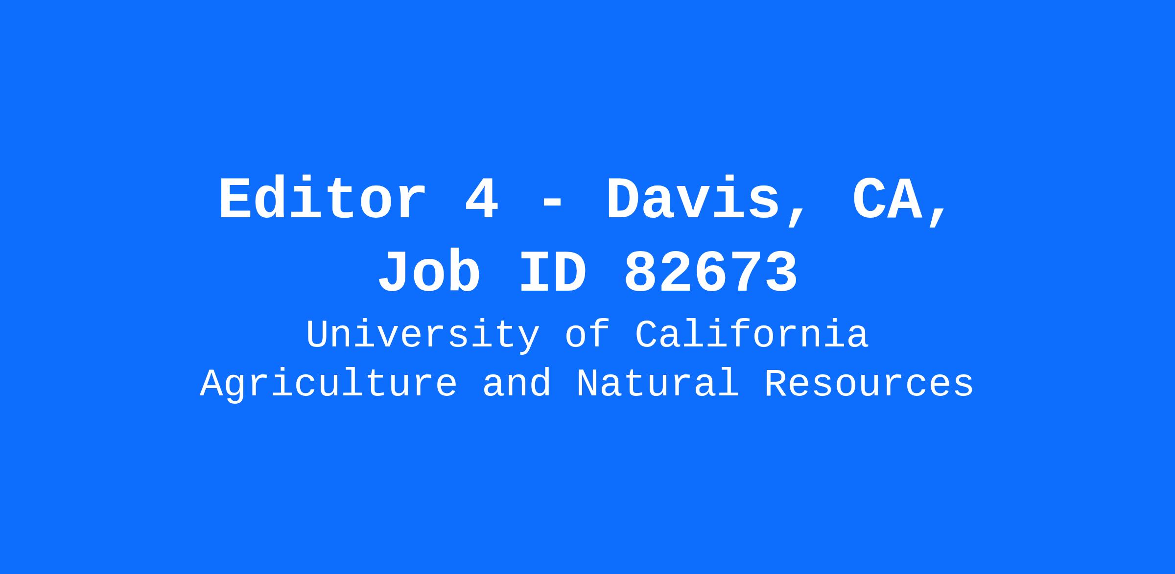 The home department for this position is Publishing. While this position normally is based in Davis, CA, this position is eligible for hybrid flexible work arrangements for applicants living in the State of California at this time. Please note that hybrid flexible work arrangements are subject to change by the University.