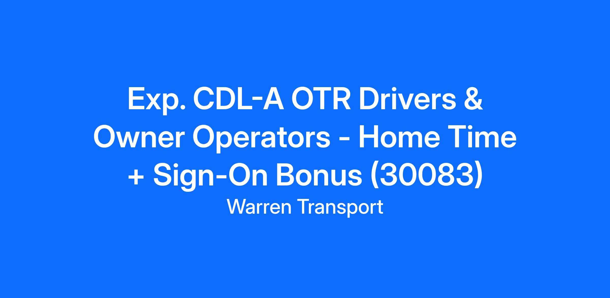 Exp. CDL-A OTR Drivers & Owner Operators - Home Time + Sign-On Bonus (30083)