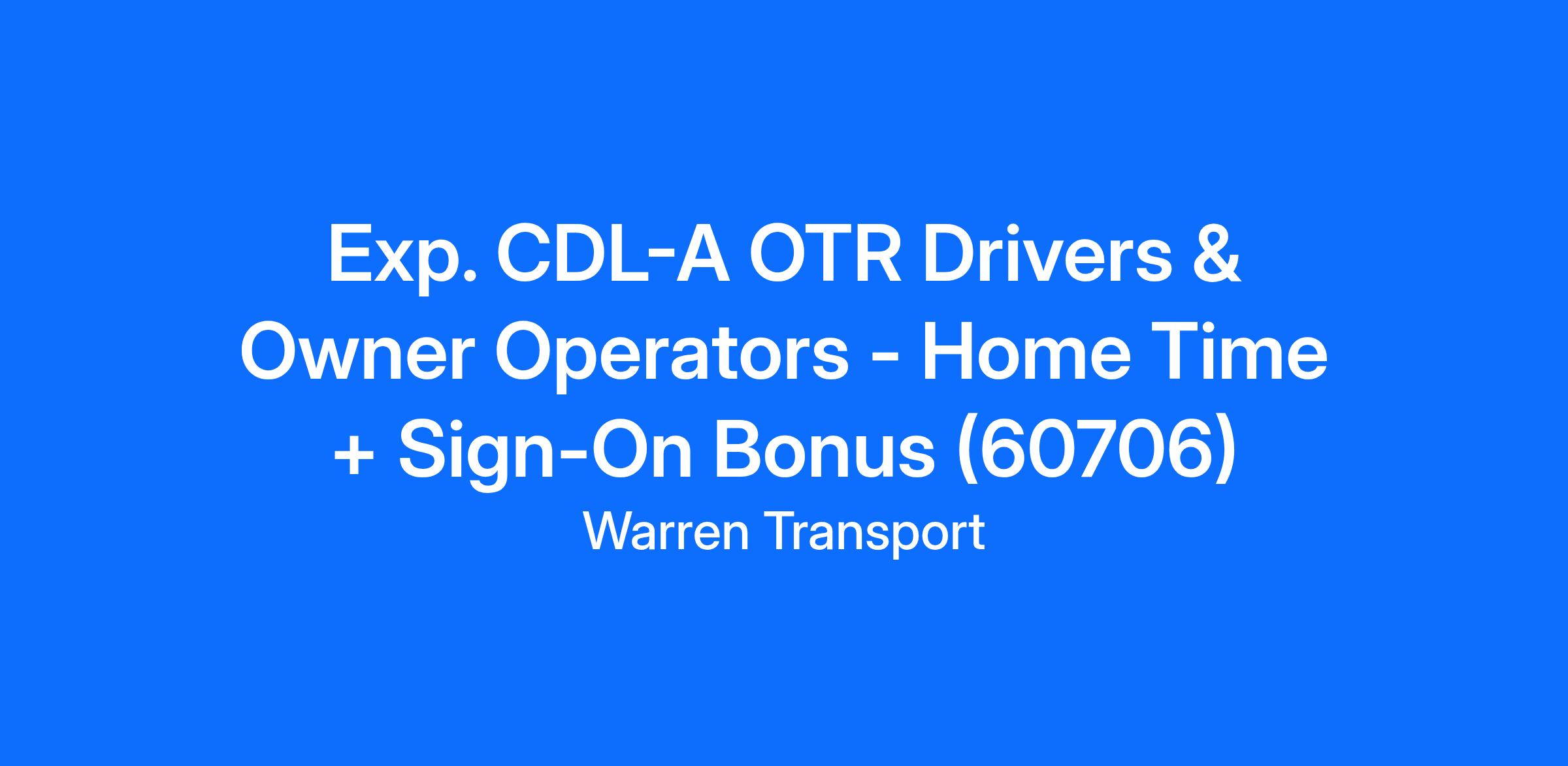 Exp. CDL-A OTR Drivers & Owner Operators - Home Time + Sign-On Bonus (60706)
